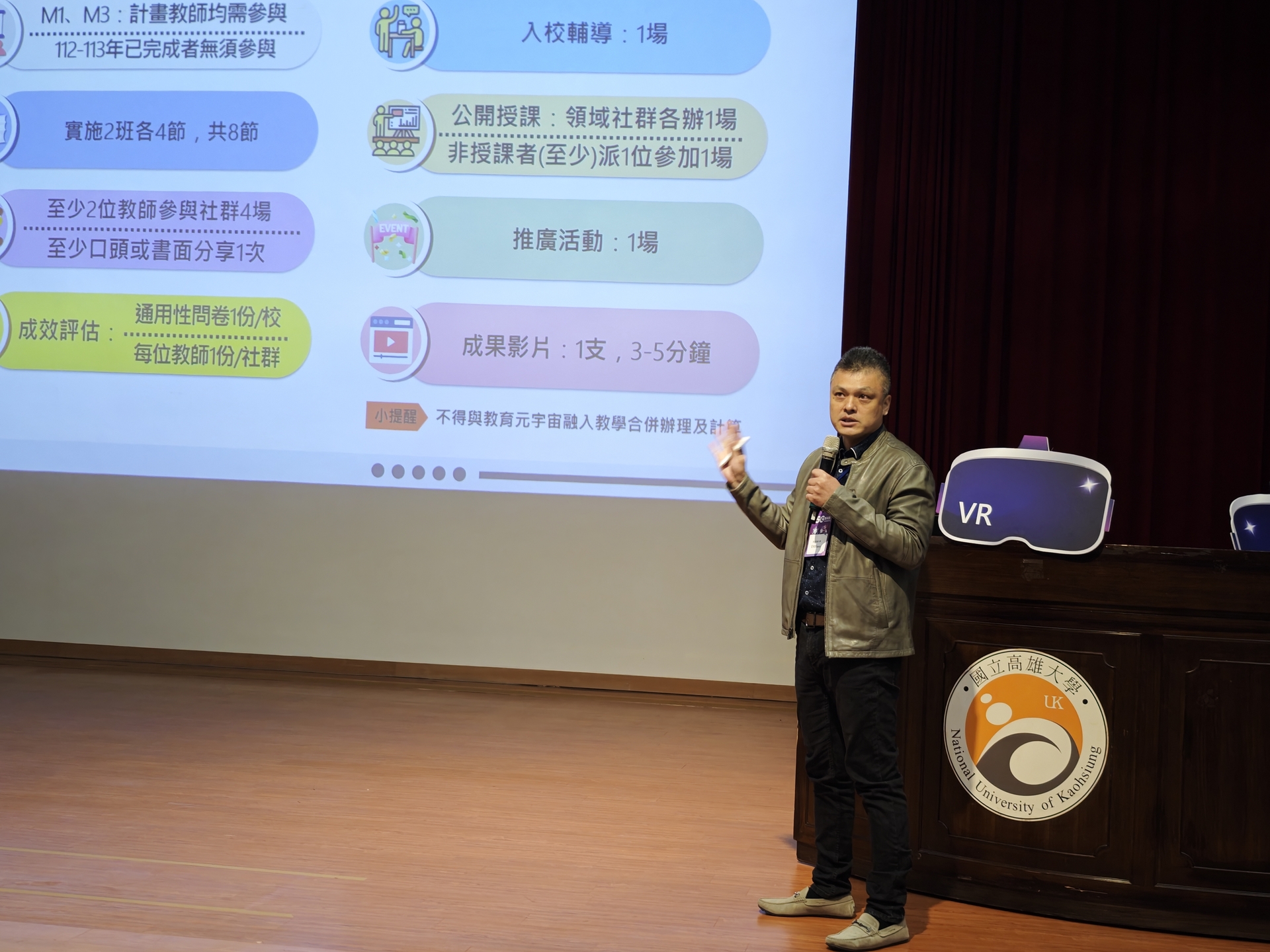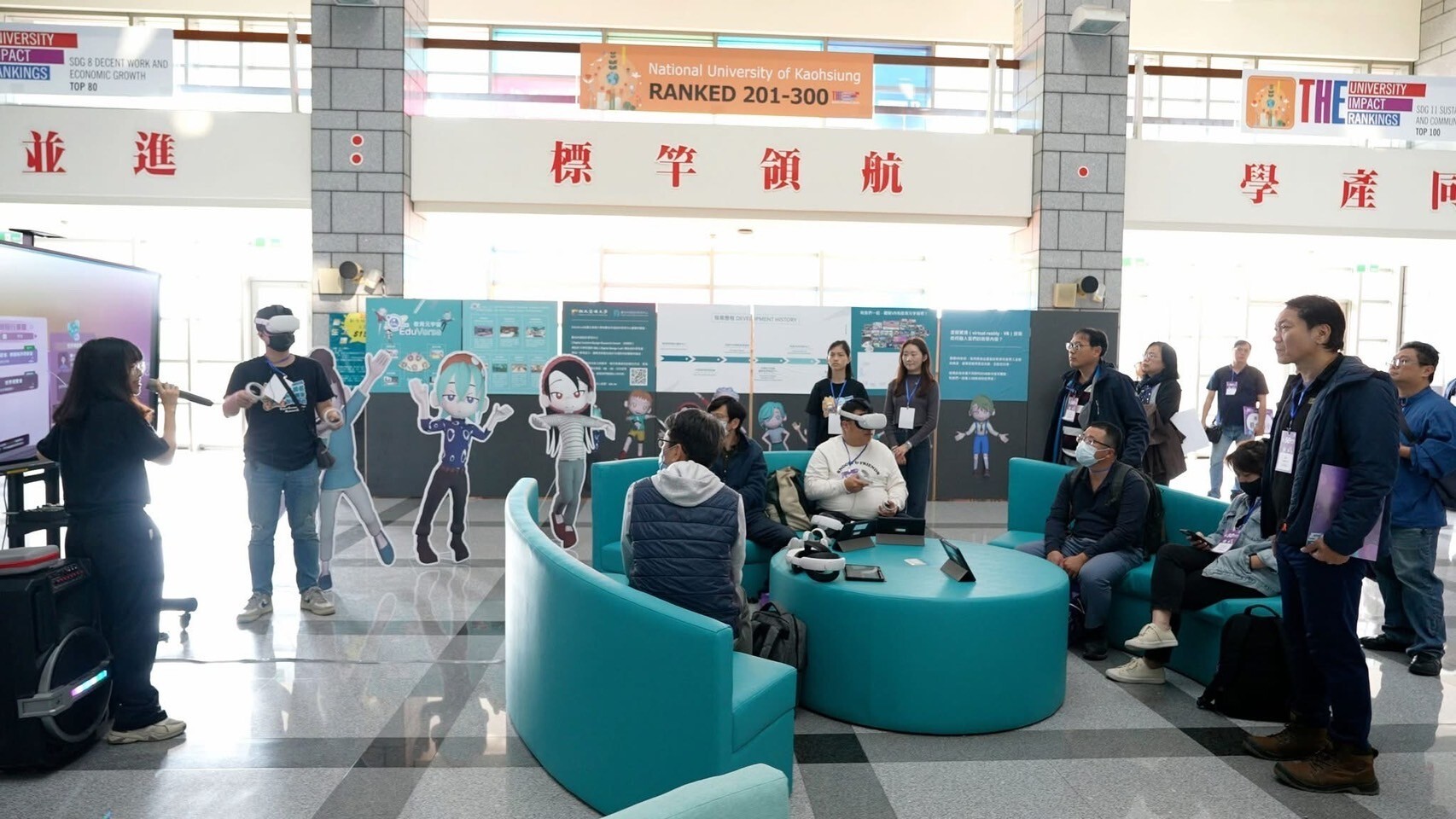 今日活動於高雄大學圖書資訊館登場,由高雄市福山國小陳永齊、福山國中許珈甄2位學生以話劇演出揭開序幕,展示「教育大市集」VR教材成果,帶領與會教育界人士進入數位學習的新紀元,並觀賞前期(民國112至113年)計畫成果,包括積極推動虛擬實境(VR)、延展實境(XR)與教育元宇宙技術於教學應用。
