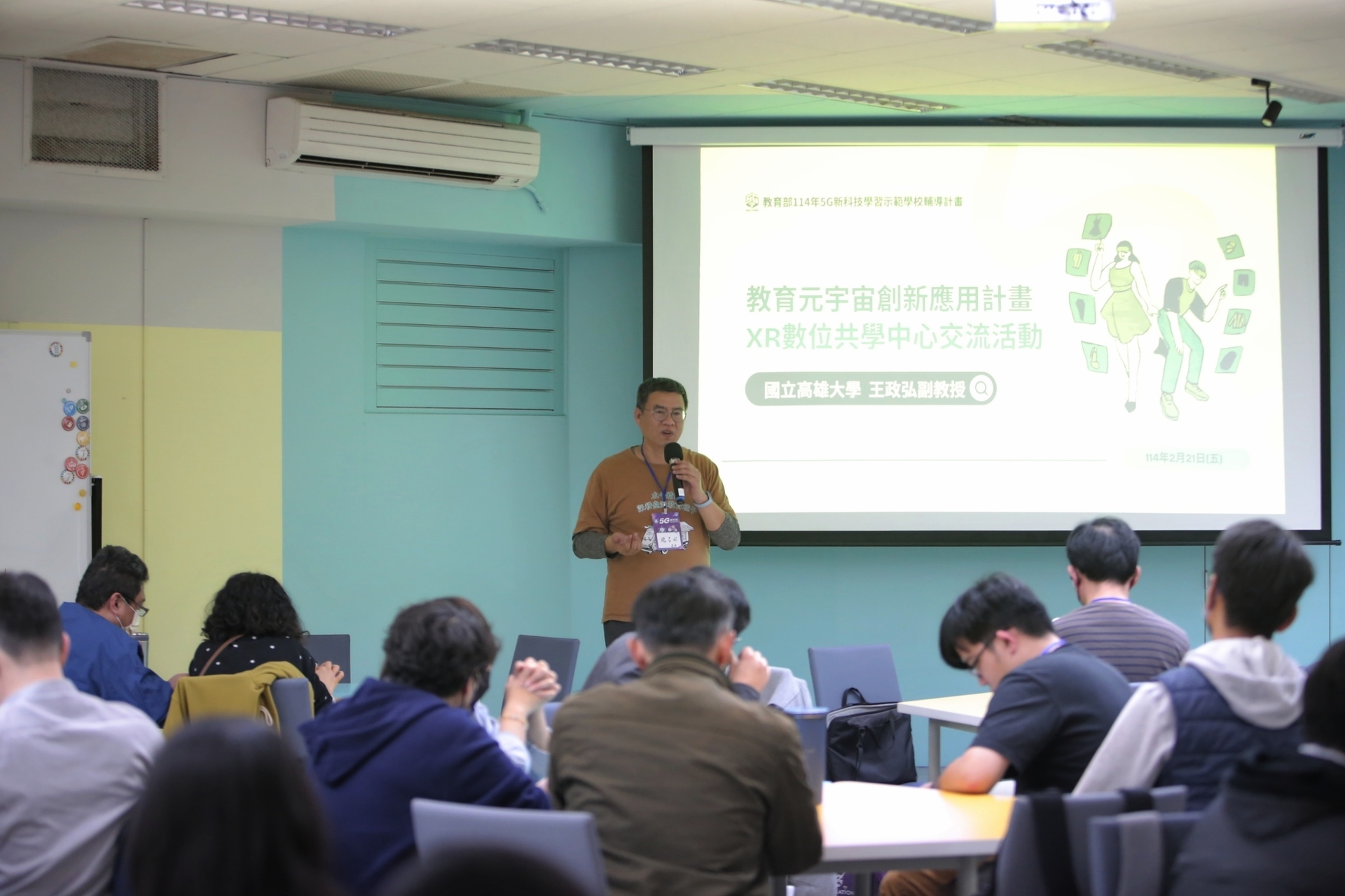 王政弘說明計畫亮點,分別為「VR融入教學」、「教育元宇宙創新應用」,以及「XR數位共學」推動。計畫團隊協助輔導各計畫學校在教學融入VR與教育元宇宙之餘,同時提供國教端先進XR技術支持,以及示範創新教育應用。