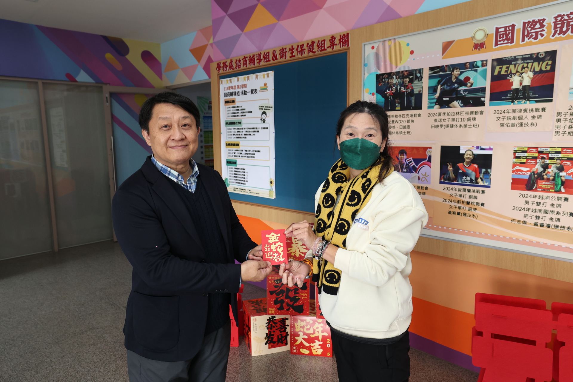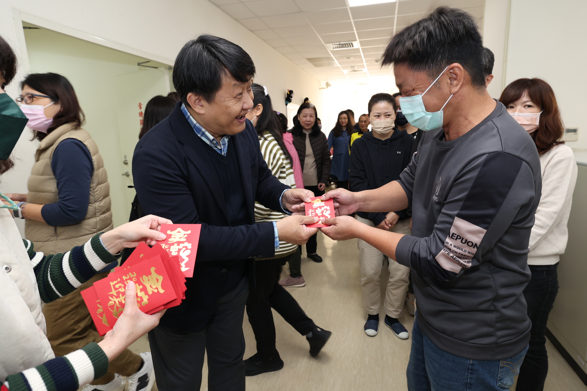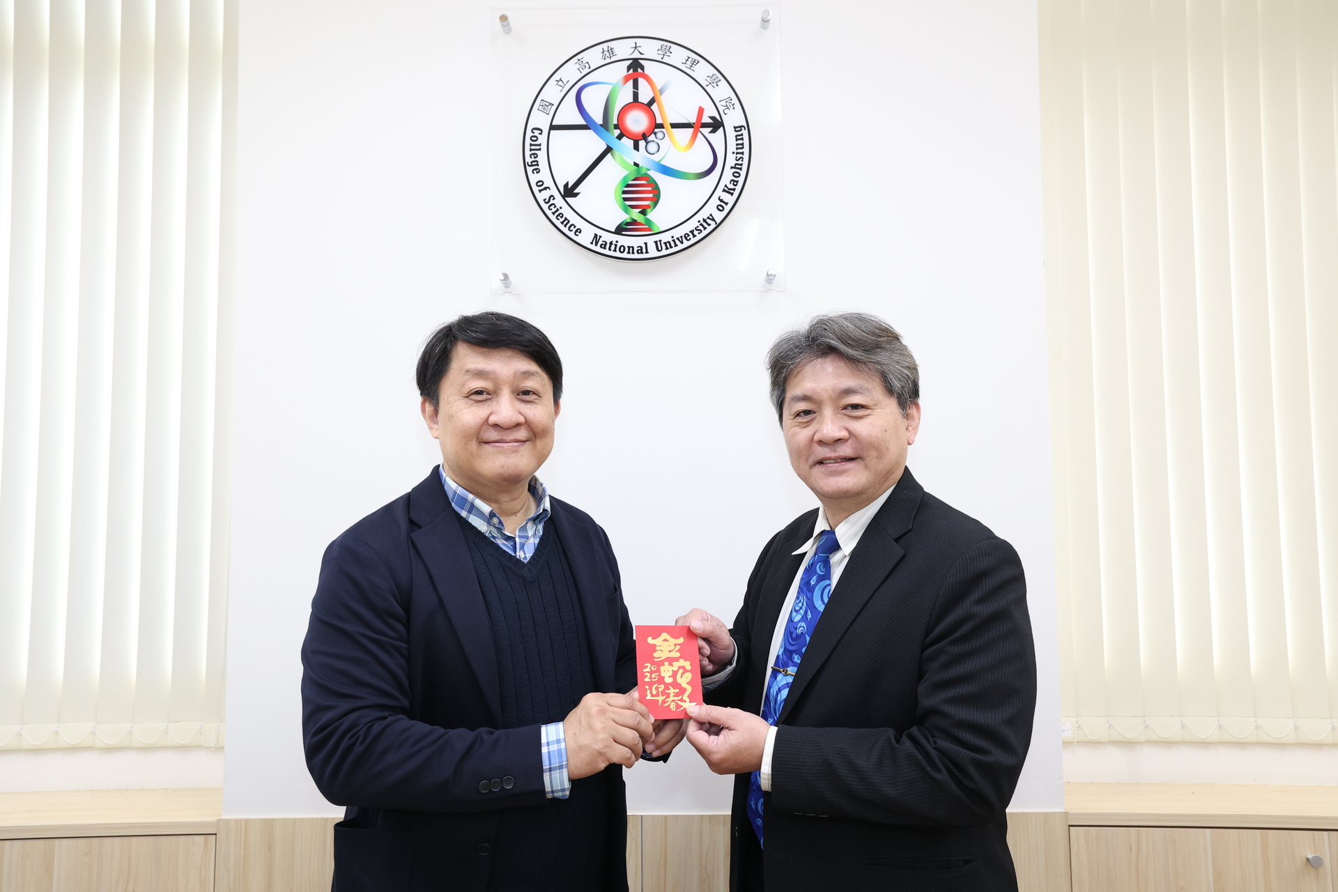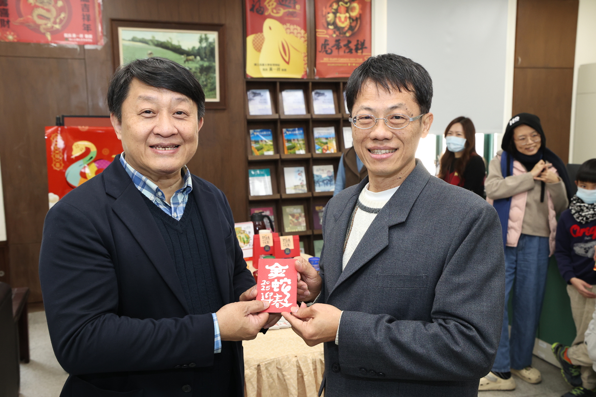 「開工大吉,今年我們繼續攜手打拼!」國立高雄大學今(5)日舉辦新春團拜活動,校長陳啓仁帶領行政團隊至各學院、處室、中心拜年、致贈「金蛇迎春」祝福紅包,感謝師長同仁過去辛勞,同時期勉「蛇騰四海,捨得拼搏」、校務蒸蒸日上。