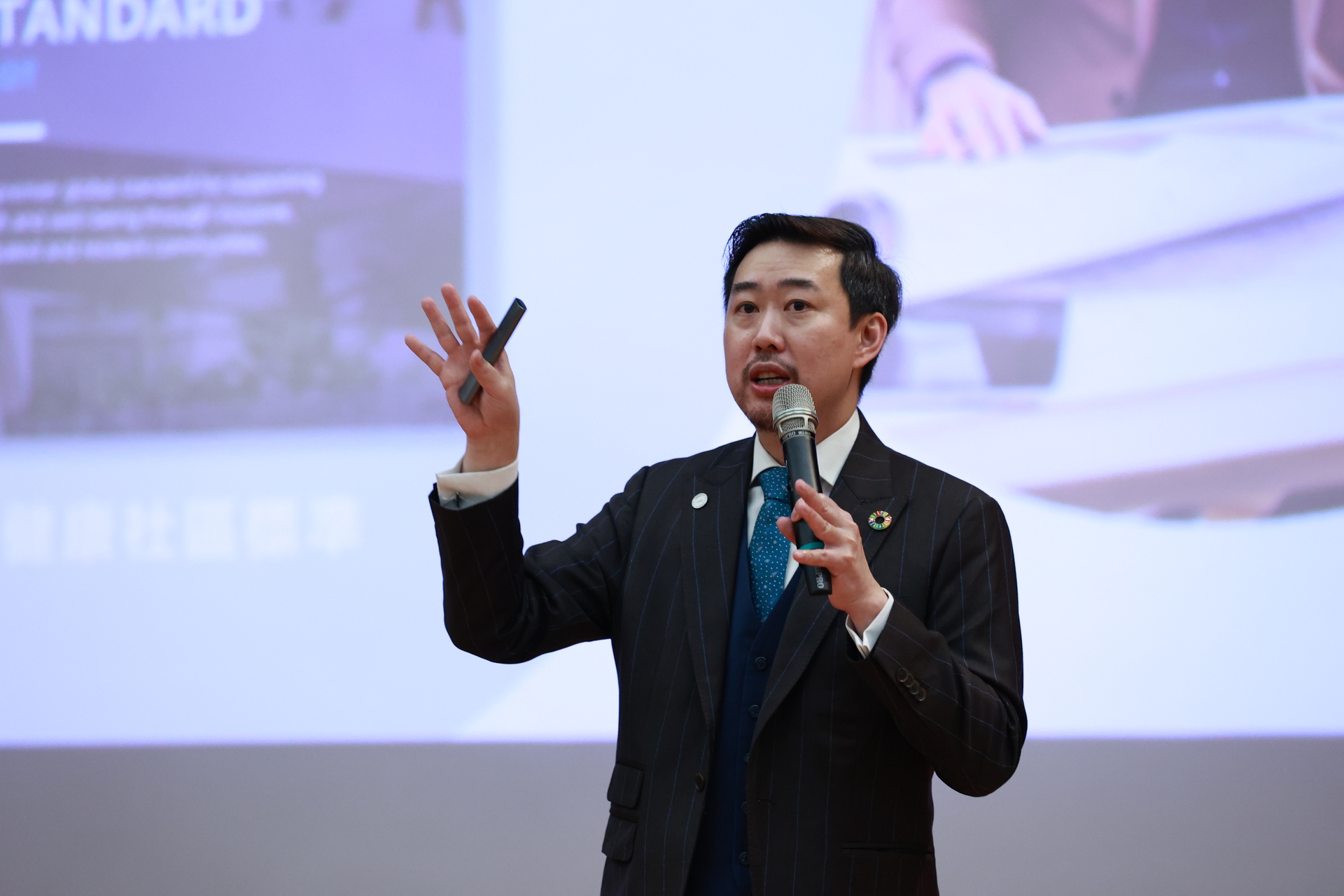 高雄大學校長陳啓仁開場致詞表示,永續發展不應僅聚焦環境,更需關注人本健康。「我們常說要救地球,但誰來救人類?健康建築正是以人為本的永續實踐。」陳啓仁強調,校方積極評估對校內建築進行升級,打造以師生為中心的健康校園,並鼓勵學生參與相關研究,為健康建築領域貢獻力量。