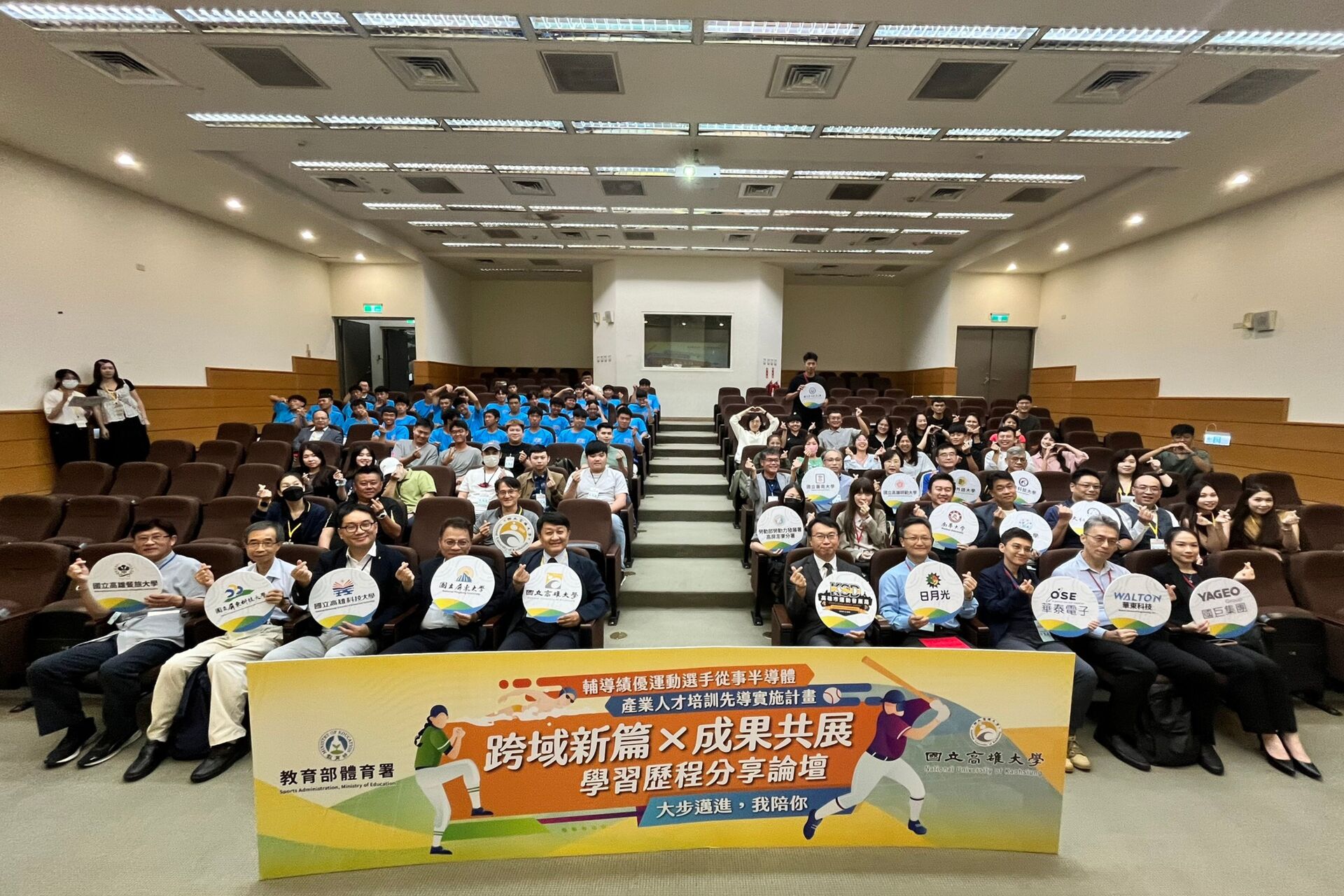 活動現場同步展示學員成果與紀錄影片,並安排全體與會代表合影留念,營造專業與溫馨兼具的交流氛圍。高雄大學長期致力於推動「跨域創新、產業鏈結、在地實踐、國際接軌」發展策略,未來將持續深化大學社會責任與多元職涯支持系統,協助更多運動員在人生轉場過程中發光發熱。