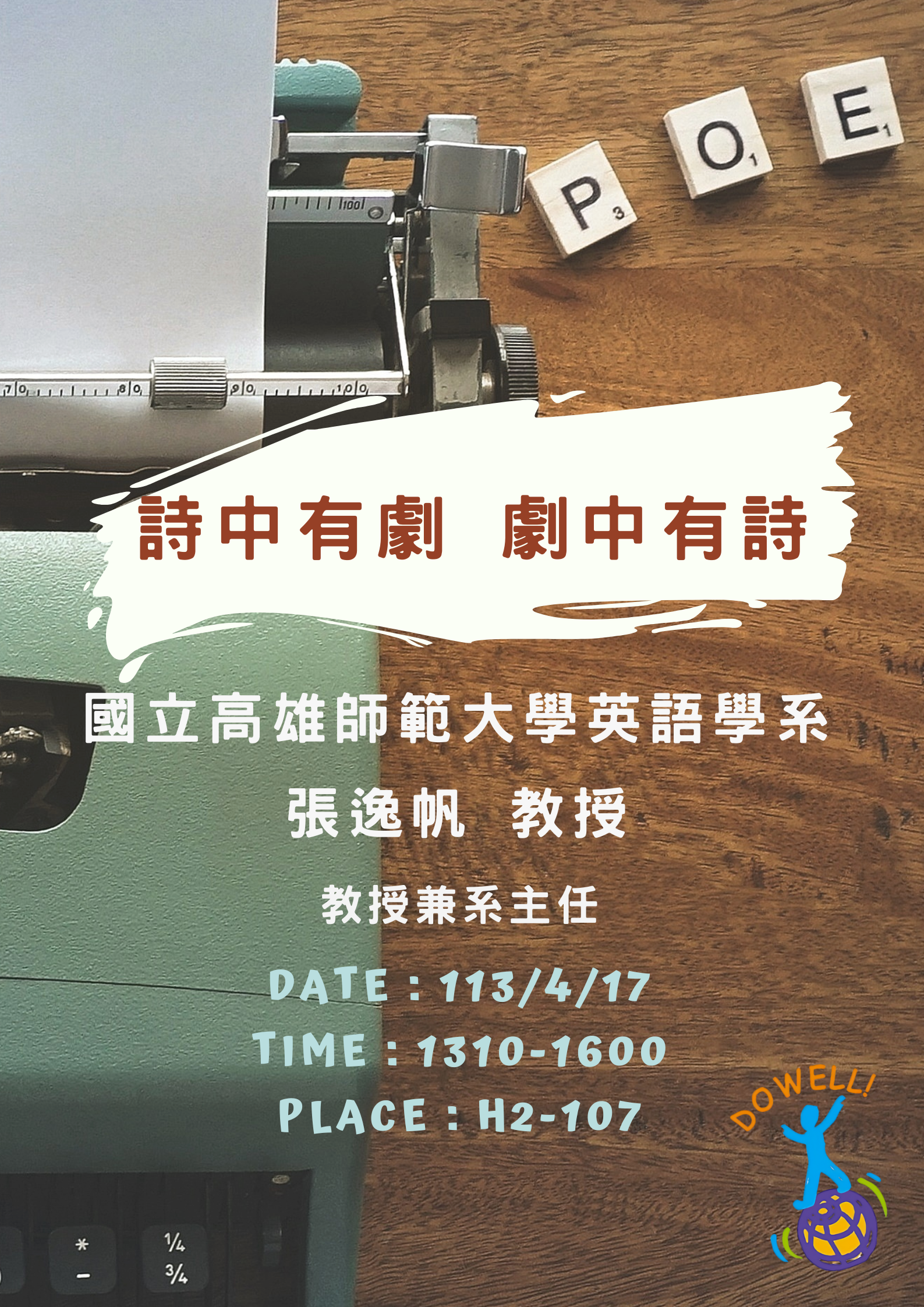 西語系邀請高師大英文系主任張逸帆教授演講,講題:詩中有劇 劇中有詩