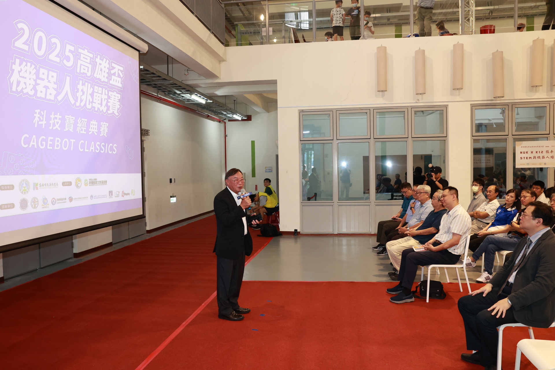 財團法人桃園市祥儀慈善文教基金會董事長蔡逢春致詞時,回顧基金會自2018年起推廣機器人教育的歷程。他指出,企業雖以工業馬達與自動化技術起家,但教育才是最具永續價值的投資。基金會連續三年與高雄大學攜手推動高雄盃機器人挑戰賽,期望透過競賽舞台,讓學生累積AI時代必備技能,也深化產學合作,持續為臺灣科技教育注入能量。