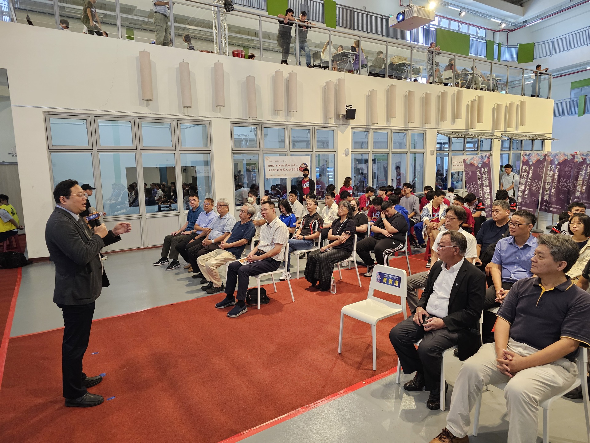 高雄市政府教育局專委許家豪表示,教育局自2023年起便與基金會及大學端合作,推廣偏鄉科技教育並捐贈設備。歷經三年推動,今年參賽規模已達278隊、逾600名選手,顯示培育AI人才的成效。他特別肯定高雄大學積極承辦賽事,展現大學推動創新教育的能量,對高雄市教育發展貢獻良多。