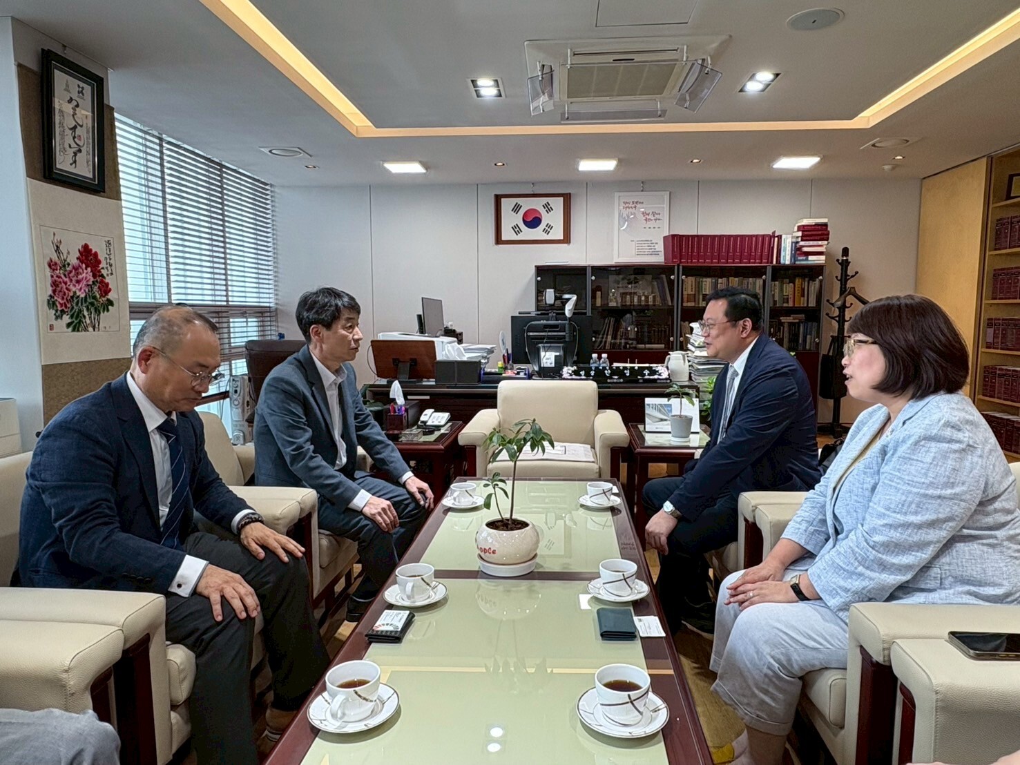 最後,訪團前往首爾同德女子大學,該校金明愛校長親自接見會晤,並就學生交換計畫及各項交流項目進行討論,並同意進一步簽署兩校學生交換協議,期待為雙方師生建立更多元的交流平台。