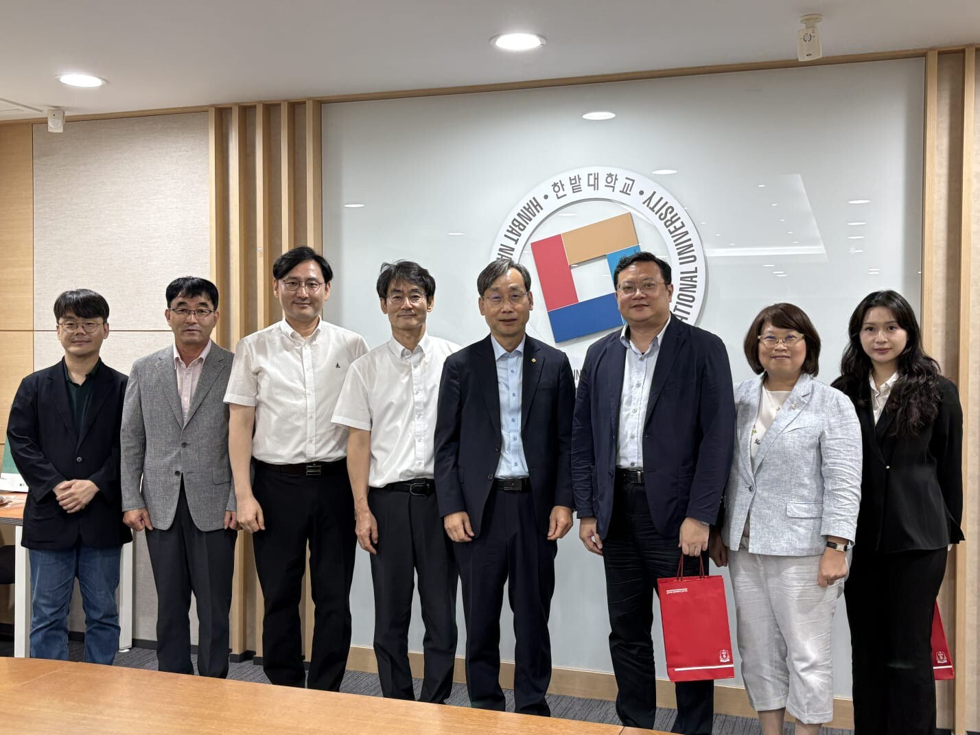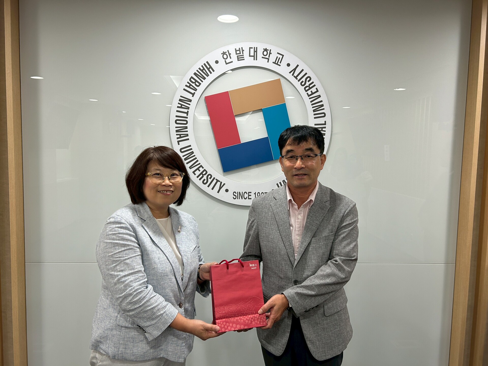 訪團首先拜會國立韓巴大學並與大田市政府代表會面,討論兩校共同舉辦研討會及推動雙邊城市合作的可行性。韓巴大學校長Dr. OH Yong-Jun、企劃處長Prof. OH Min-Wook、國際事務處長Prof. KWON Ki-Seok、電子工程學系教授暨智慧奈米半導體研究所所長Prof. KOO Chi-Wan,以及大田市半導體產業支援部門經理Mr. KIM Jin-Soo等人均出席會談,展現雙方推動合作的高度誠意與共識。