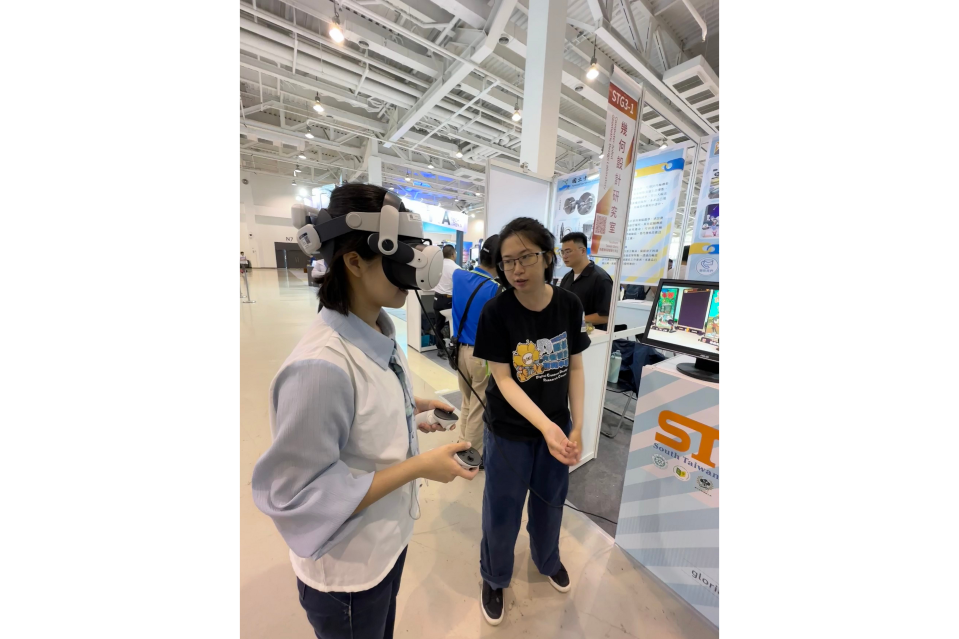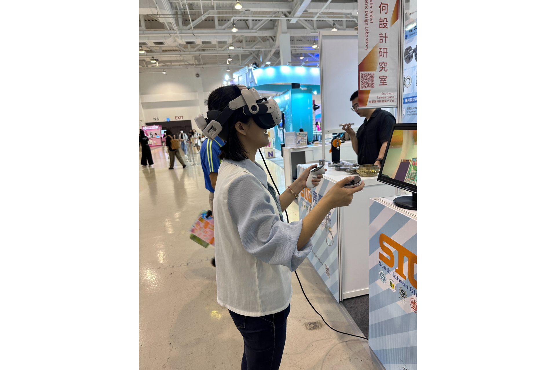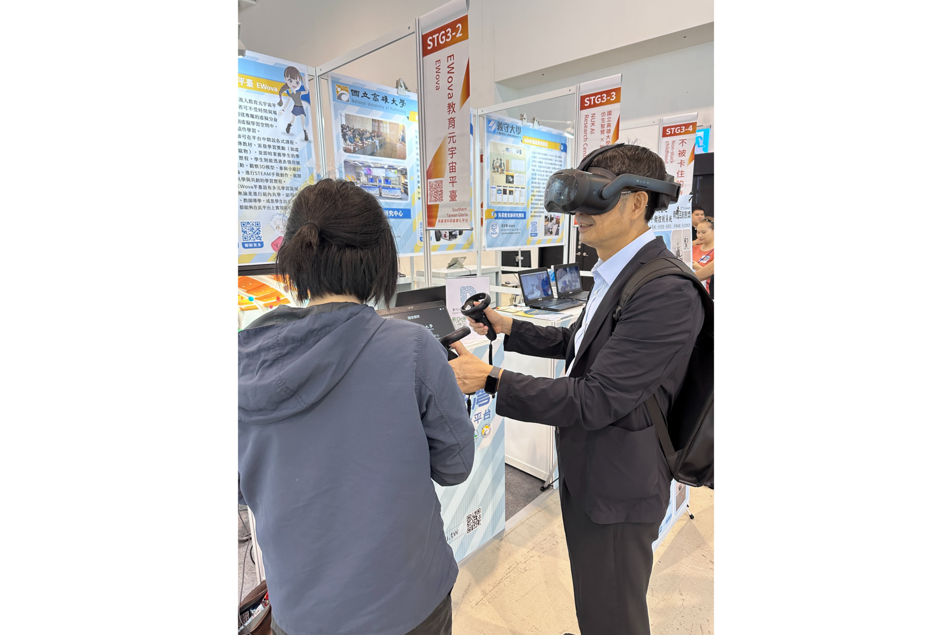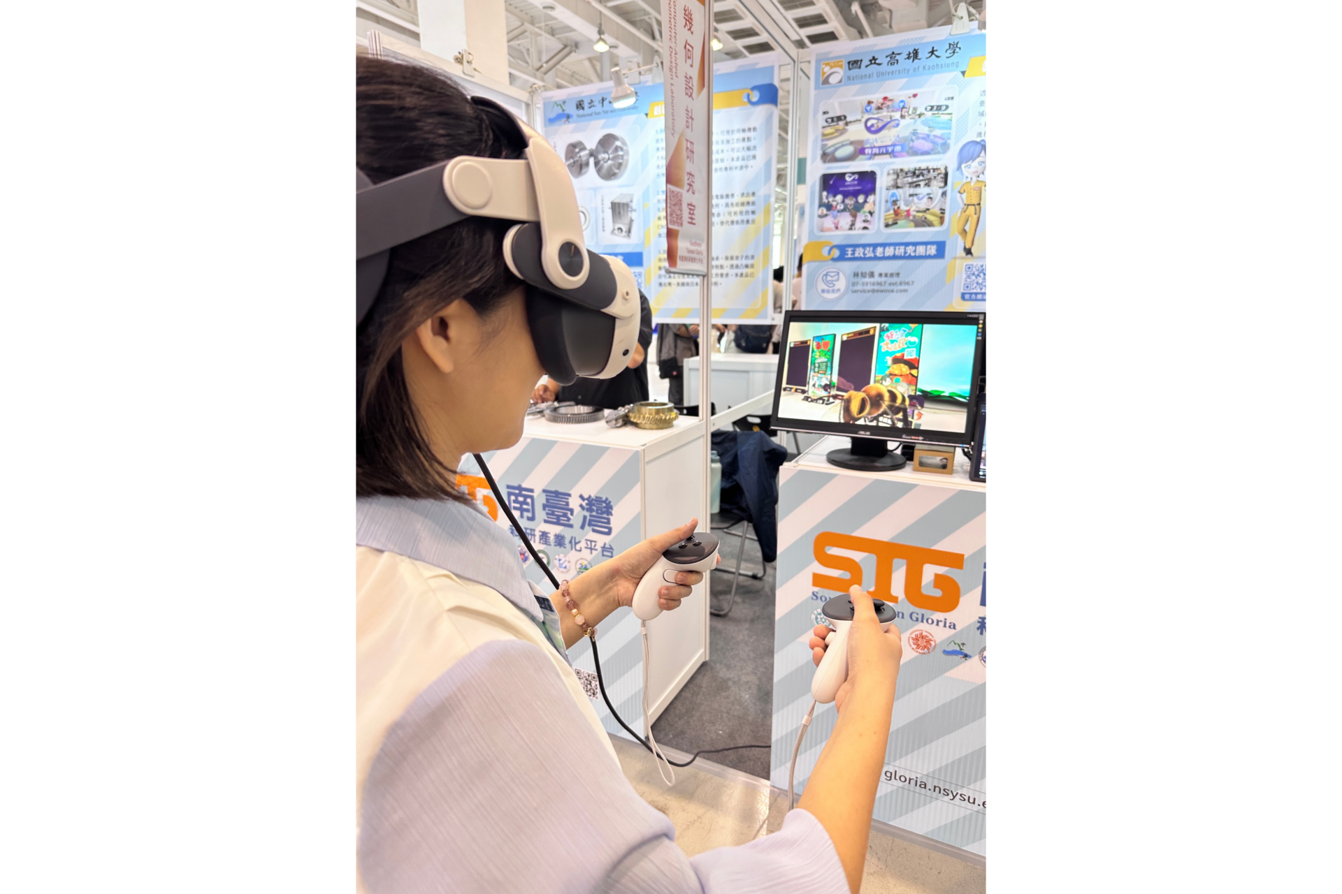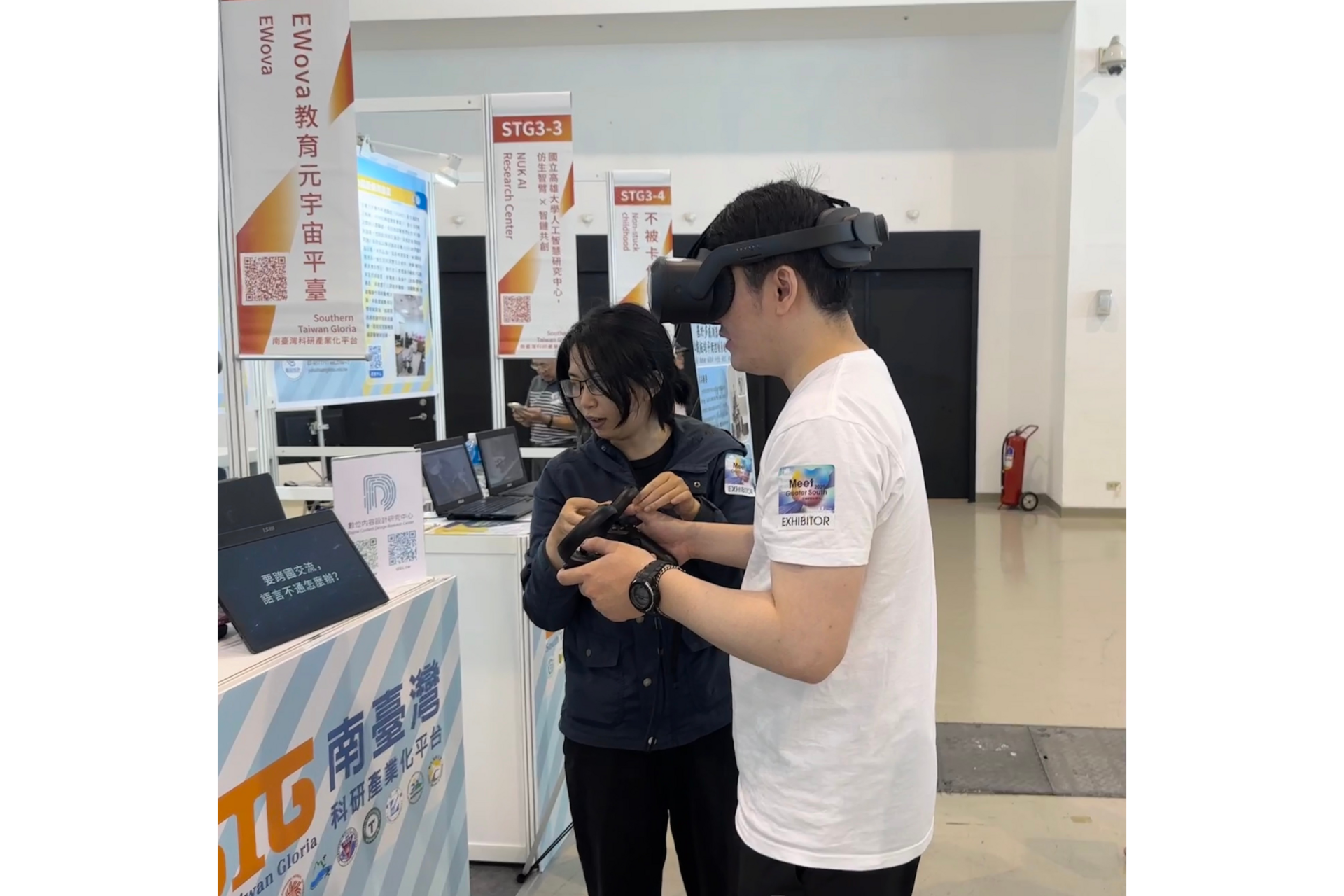 國立高雄大學研究發展處產學育成中心偕同數位內容研究中心王政弘老師團隊及人工智慧研究中心吳志宏老師團隊,參與於高雄展覽館舉辦的 2025 Meet 大南方展覽,展出兩項AI應用創新技術—「教育元宇宙平臺 EWova」與「仿生智臂 × 智鏈共創」研究成果,成功吸引產業界代表、教育工作者及學生族群熱烈迴響,成功展現高大科研成果落地與跨域應用的能量。