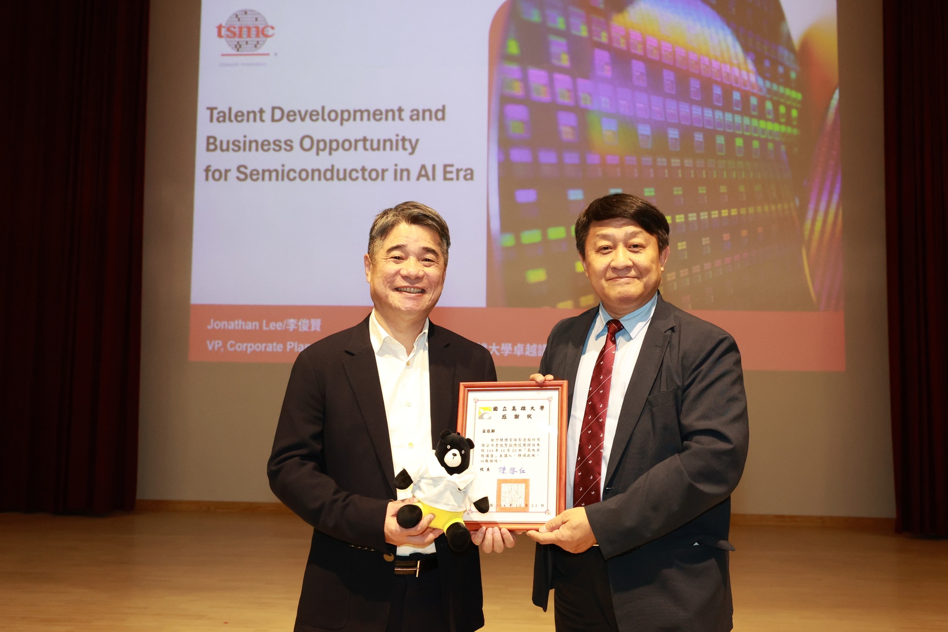 談及台灣的角色,李副總表示,台灣在PC與半導體產業的長期累積,使其在AI時代占據關鍵地位。台積電以專注先進製程、封裝技術與完整生態系聞名,透過「不與客戶競爭」的專業積體電路製造服務模式,成功成為全球半導體創新的重要推手。他並分享,高雄廠的建設與投資,象徵台灣半導體產業向南布局,也為高雄帶來產業升級與供應鏈轉型的新契機。