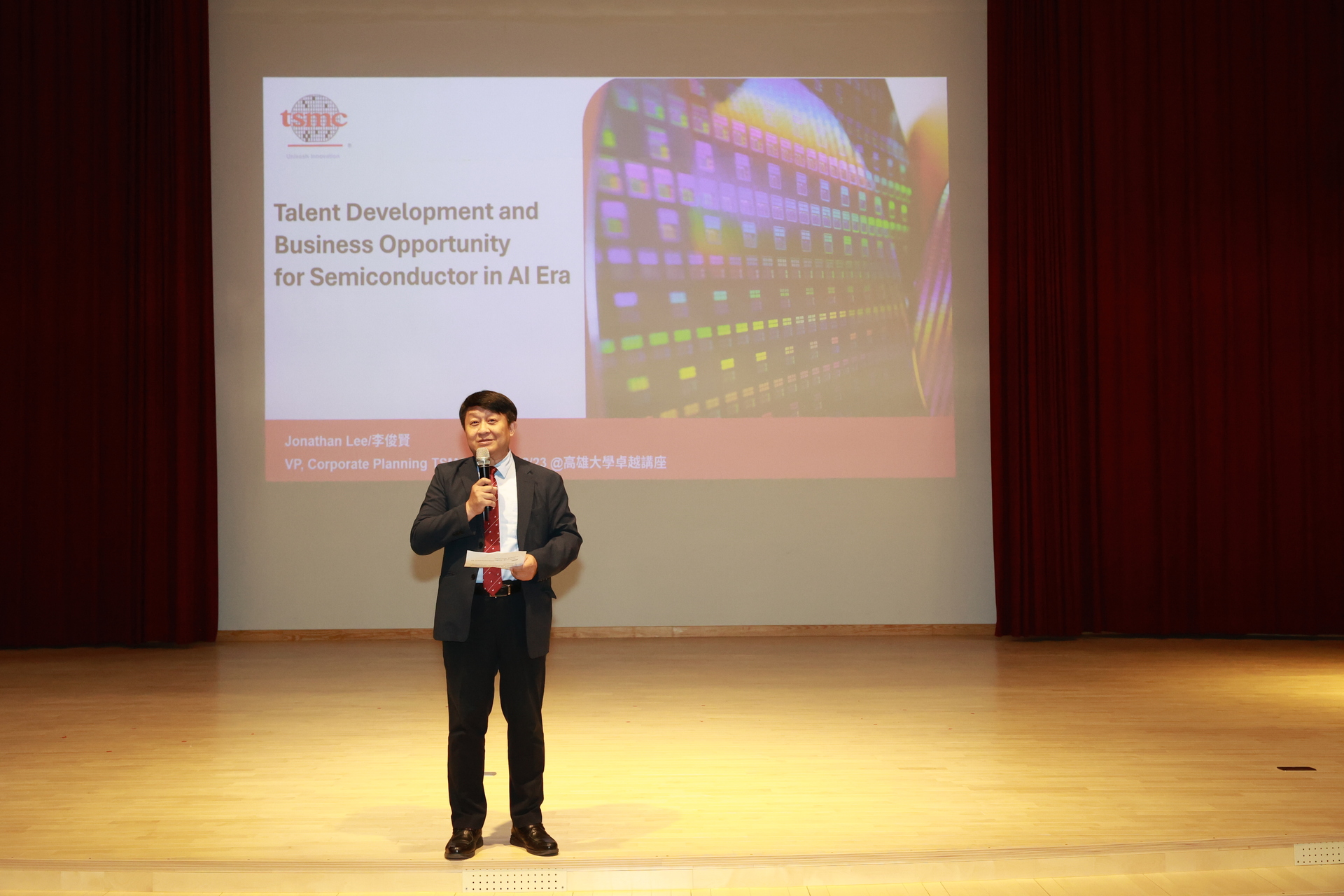 國立高雄大學《卓越講座》23日邀請台積電副總經理李俊賢,以「AI 浪潮下半導體產業的機會與挑戰及人才培養」為主題,深入剖析AI驅動下的產業趨勢、台灣半導體的關鍵角色,以及未來人才所需具備的核心能力,吸引師生踴躍參與。