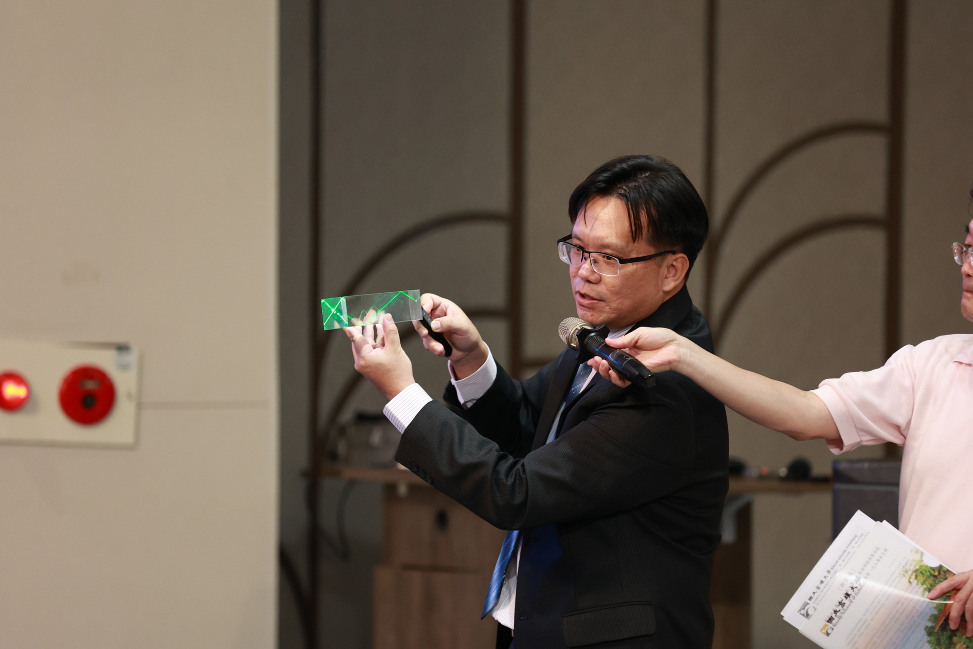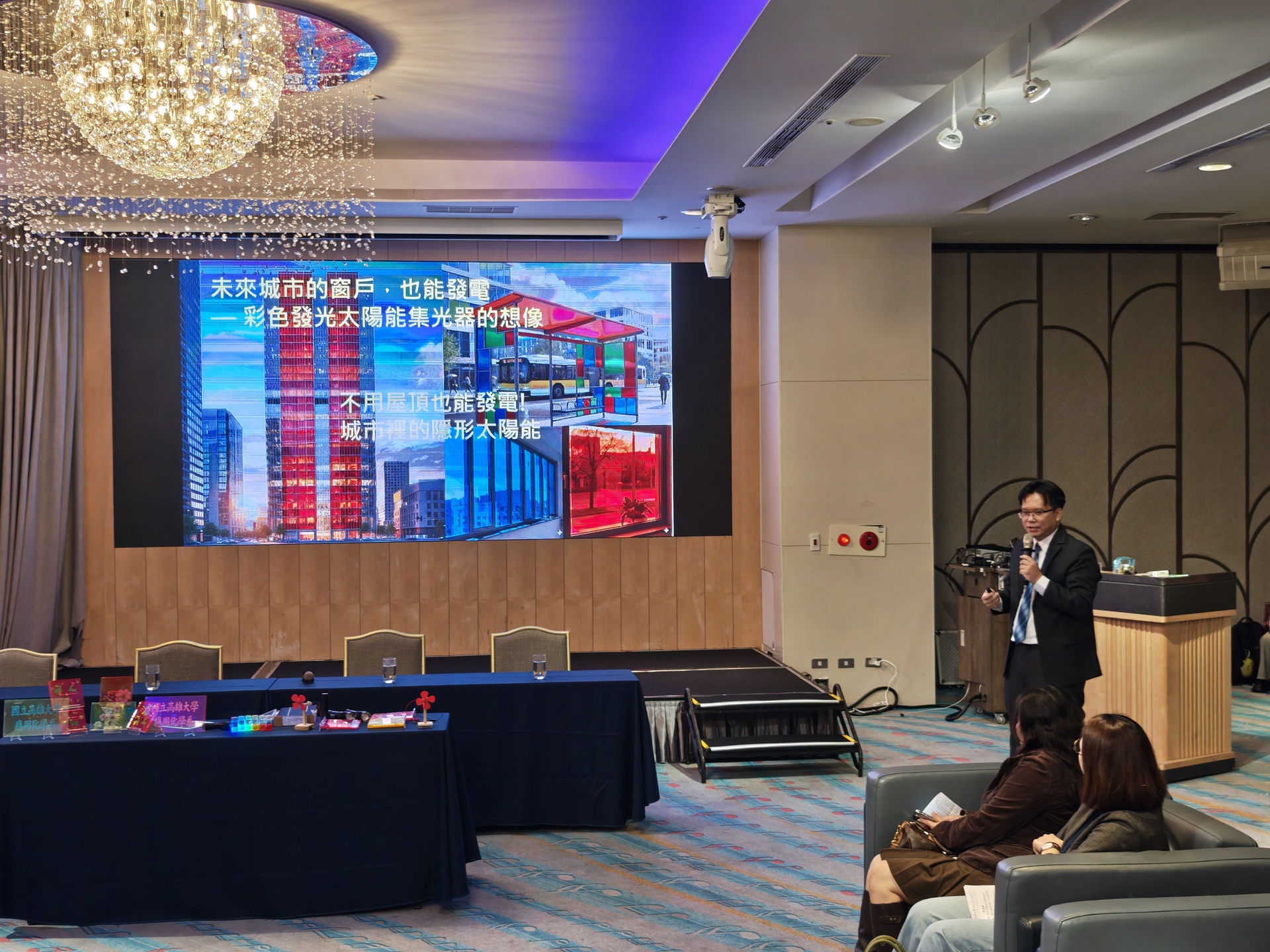 他進一步說明,目前展示的裝置屬於概念驗證與原型階段,研究重點在於證明導光與發電機制的可行性。後續將持續優化螢光材料的穩定性與導光效率,並評估放大尺寸、耐候性與實際建築整合等課題,逐步朝向實務應用推進。