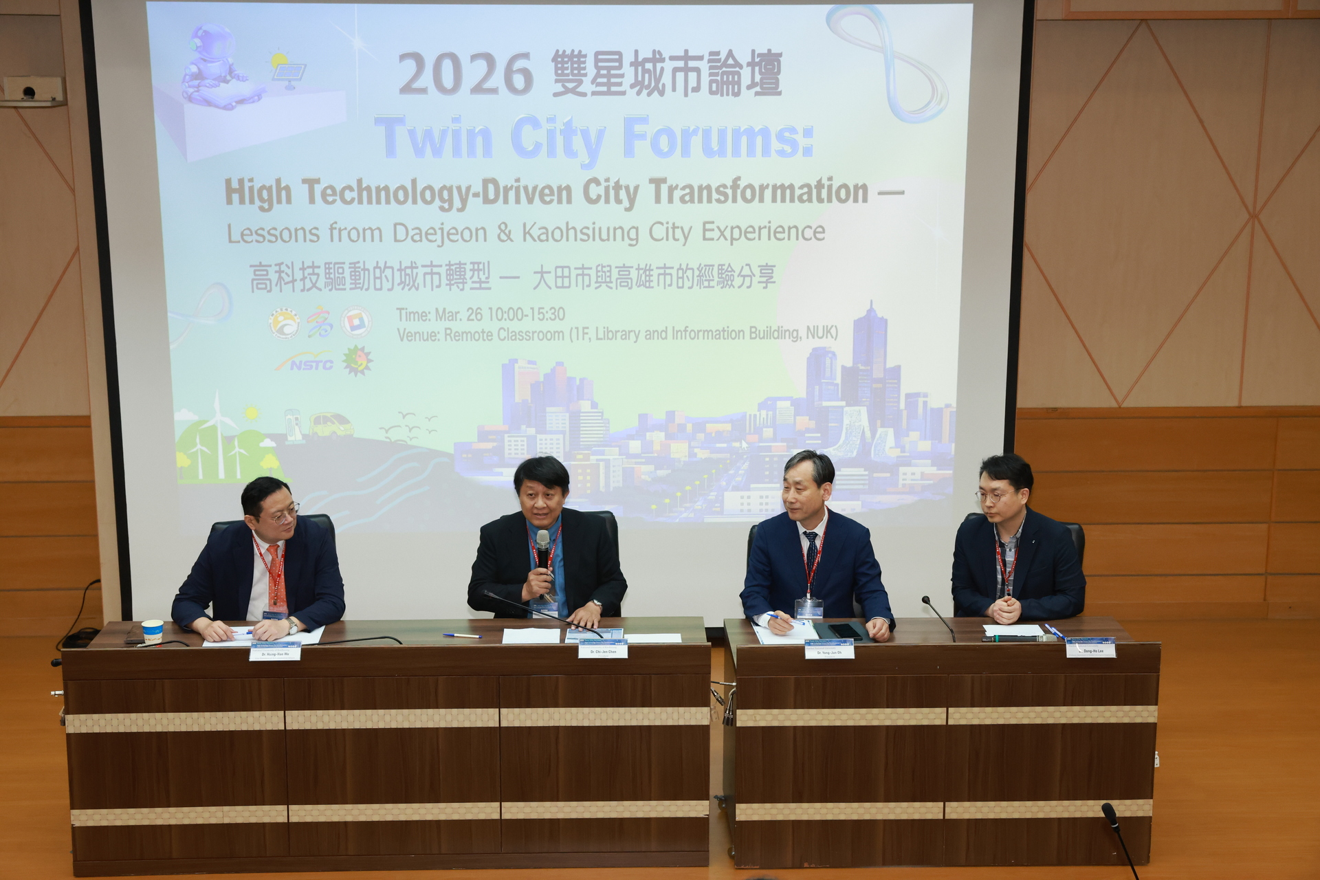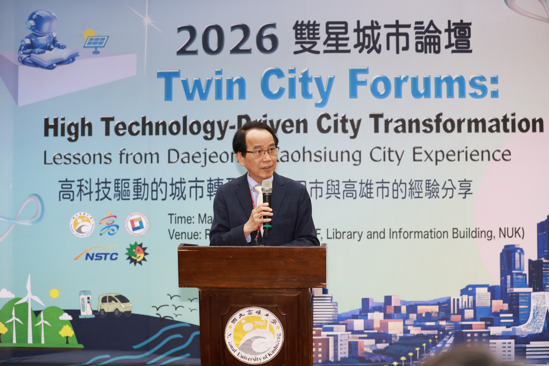 由國立高雄大學聯合高雄市政府行政暨國際處與都市發展局主辦,並與韓國國立韓巴大學(Hanbat National University)共同推動的「雙星城市論壇:高科技驅動的城市轉型—大田與高雄市的經驗分享」,於26日在高雄大學盛大舉行。本次論壇在國家科學及技術委員會指導及日月光環保永續基金會支持下,匯聚來自台灣與韓國的政府官員、學界專家及政策實務者,聚焦智慧城市、半導體人才培育及淨零轉型等關鍵議題,展現跨國城市在科技驅動下的轉型策略與治理經驗。