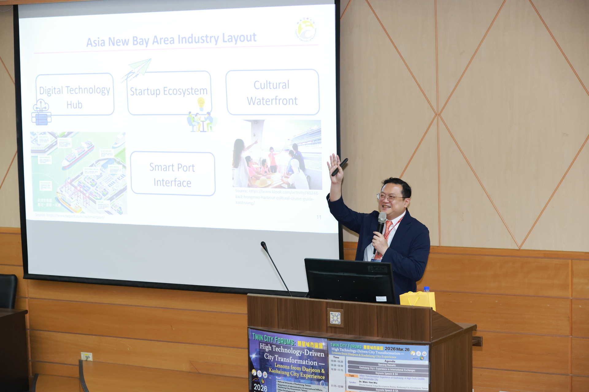 在政策與實務交流方面,高雄市政府行政暨國際處處長張硯卿分享高雄近年推動城市外交的成果,指出透過與姊妹市及友好城市的多層次合作,高雄已成功提升國際能見度,並將其城市轉型經驗輸出至國際。都市發展局局長吳文彥則以「高科技、宜居與永續城市」為題,說明高雄如何透過都市更新與運輸導向發展(TOD),將產業棕地轉型為半導體產業聚落,同時推動社會住宅與公共建設,實現產業與生活品質並進的城市願景。