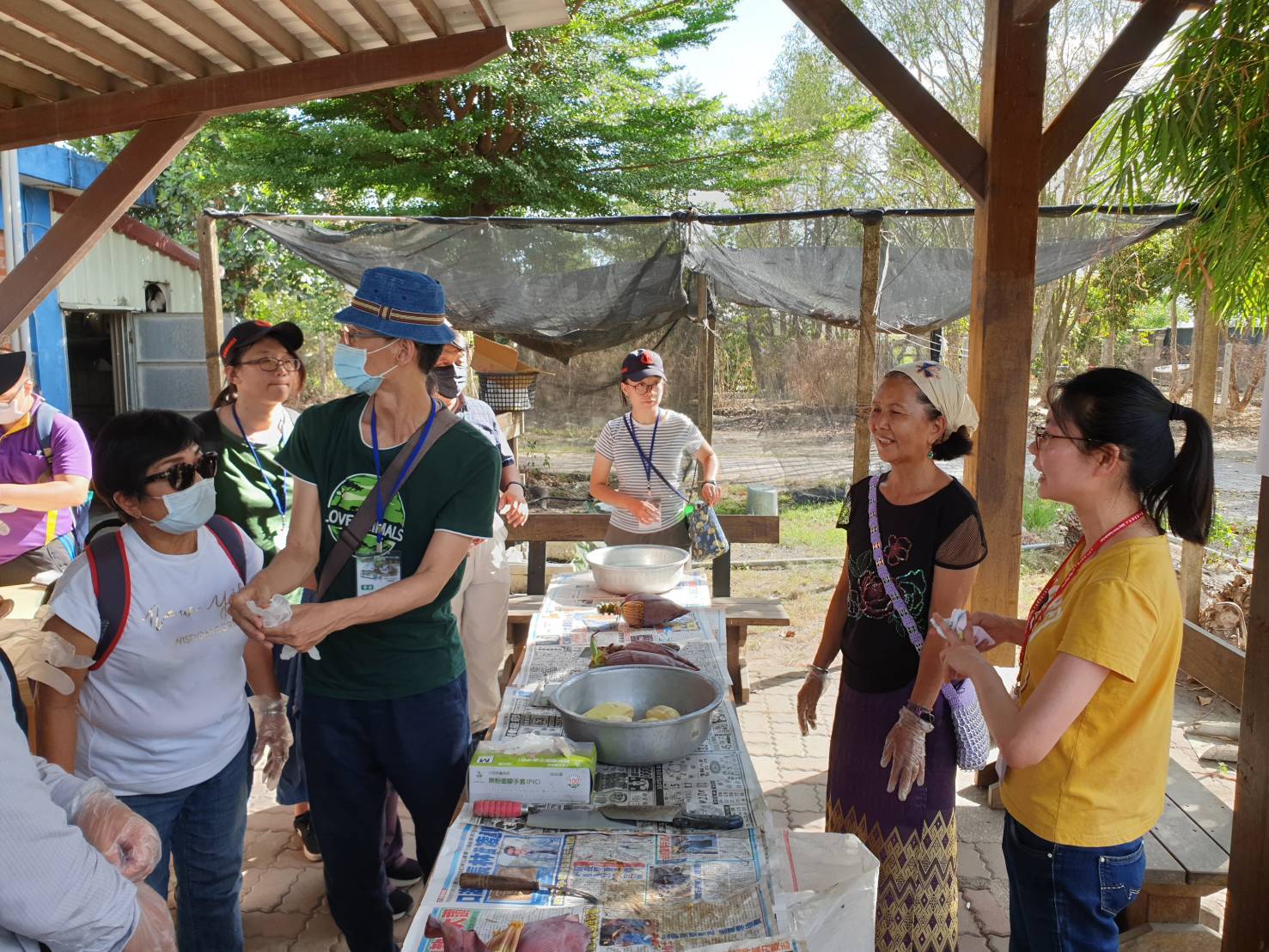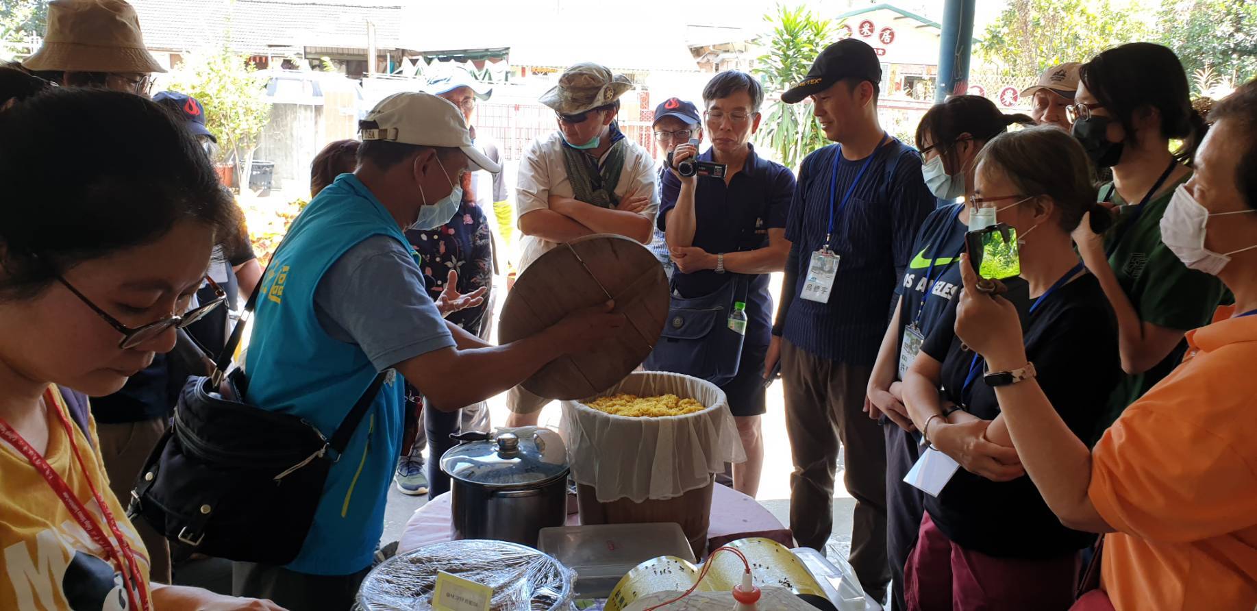 【文字、照片提供:高教深耕計畫專案經理張志成,活動為5月8日,三級警戒前舉辦】2021-06-18 國立高雄大學辦理「滇緬眷村歷史建築與安置空間文化踏查體驗營」計畫,在辦理2場講座之後,於5月8日(星期六)由主持人陳啓仁教授兼教務長帶領,進行滇緬眷村的現地空間文化考察活動。 位於屏東縣與高雄市交界的定遠新村與信國新村,這區域多年來依然保有的其眷村空間與生活型態,這次實際體驗的不僅是當年「國雷專案」歸臺之義民人數最多的安置聚落,許多還保留最初的建築格局形式,同時也能見到受到在地原始環境的就地取材土石運用與周邊文化影響與近60年來的空間增改建的變化,回應之前高雄與台中兩場講座的內容,呈現出滇緬移民從異地定居環境適應到族群文化融滲磨合的脈絡與景況特色,在場25位踏查學員無不驚奇,並且頻頻詢問材料特色與空間的構成與變化之處。 此外,此地氣候與東南亞大陸相近,許多原鄉村民及其第二代近年得以返鄉帶來種子,自家皆栽有許多來自故鄉香料植物,以供日常煮食之用,並且與台灣在地的飲食結合,發展出具有族群與地域特色的料理,例如香草與波羅蜜果,又如結合在地的香蕉花風味菜、香草牛肉麵與金三角米干等特色料理。此次學校向文化部文化資產局提案文化資產學院推廣群組計畫時,審查委員意見提到,計畫中除空間體驗外,應留意多年來所發展出的無形文化,如飲食、生活文化等,也因此在行程中安排讓前來參與的學員體驗與品嘗滇緬的煮食技藝與異國料理的風味特色。 誠如現場踏查時老師與許多學員的感受分享,定遠新村與信國新村的滇緬眷村文化帶有著東南亞的異國風情,加上其曲折歷史發展與族群文化展現,多年來已是高雄屏東民眾生活的一部分,呈現台灣各地出豐富而多樣的生活文化,是教育推廣的好場域,其特色如何被保存與發展,未來如何做創生與規劃是大學高等教育的挑戰與實踐所在,國立高雄大學本次活動由通識教育中心執行高教深耕計畫主軸四推動,教學發展中心協助活動之辦理,期待第一年的認識場域的推廣活動,可延伸出第二年的場域經營與活化,由大學發揮影響力,讓更多在地連結與教育學習得以永續共行。