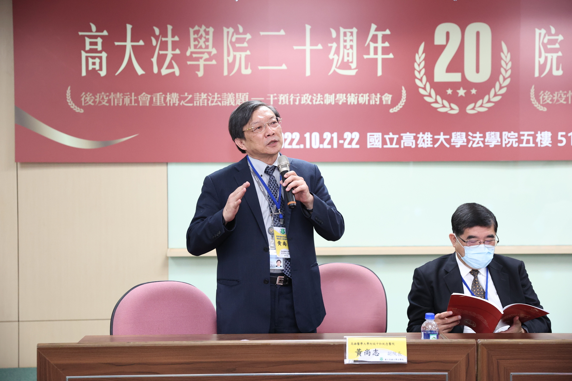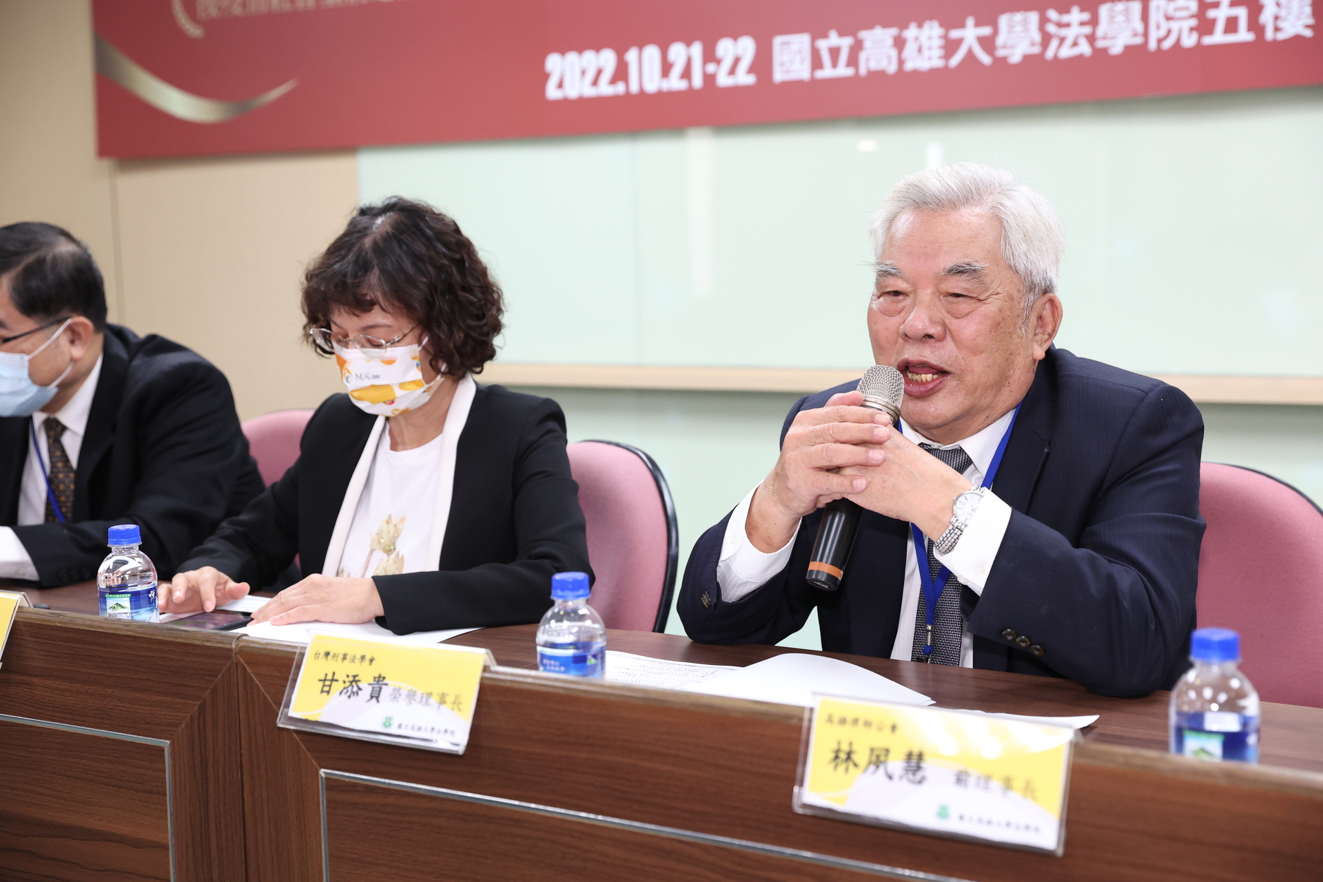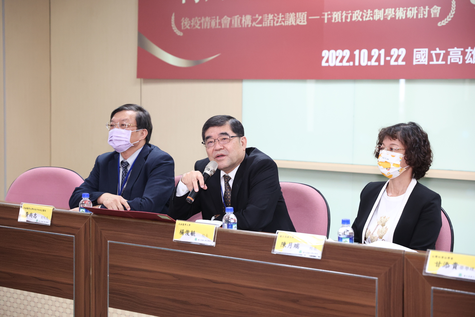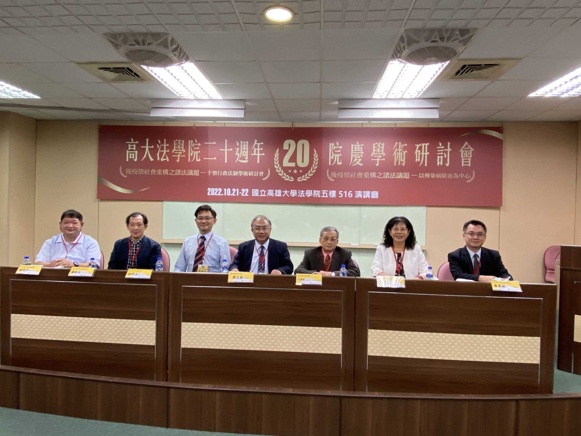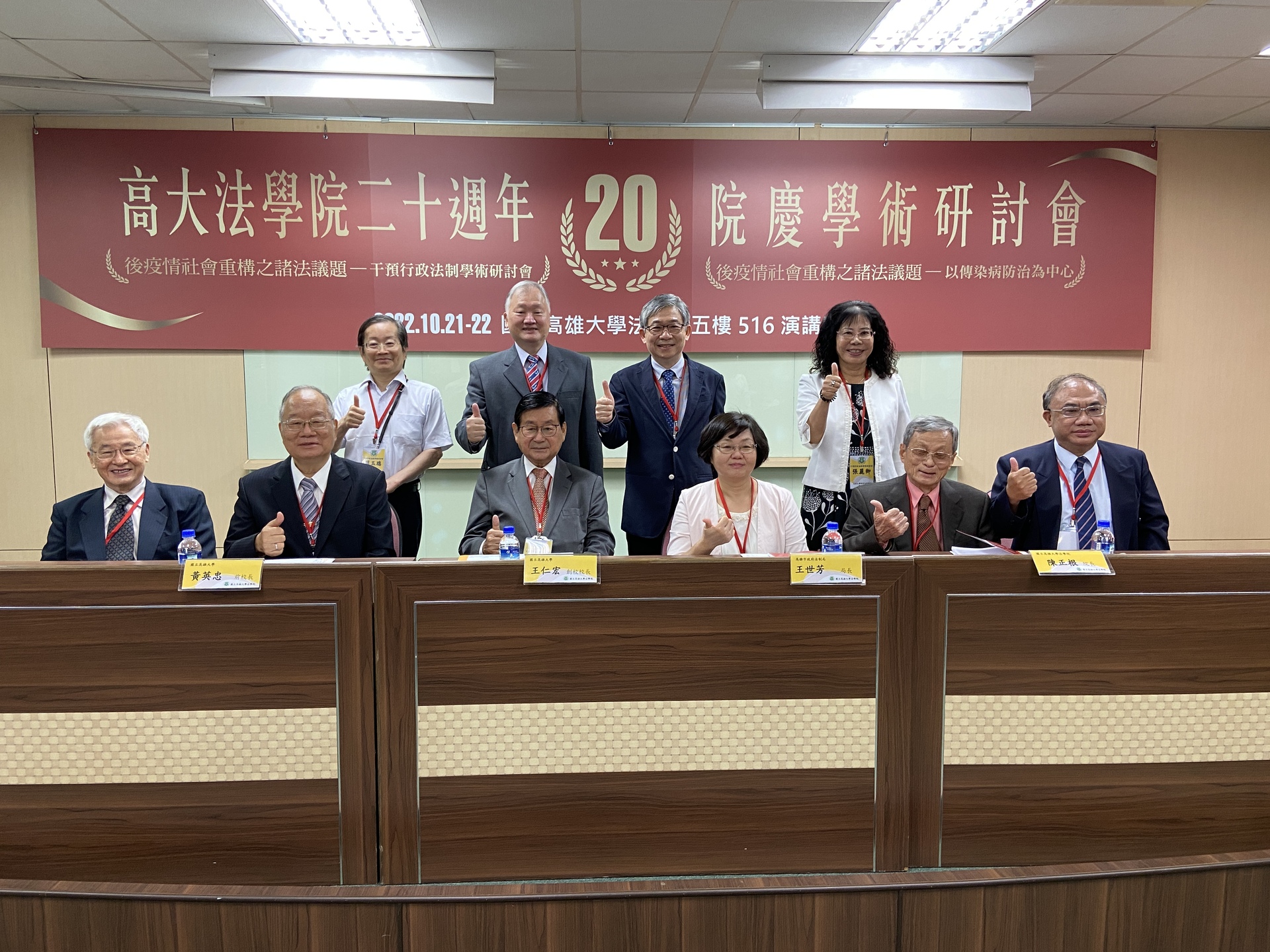鑑於2020年以來,疫情席捲全球,終於今年漸露曙光,高雄大學法學院院慶特以「後疫情社會重構之諸法議題」為主題,第一天研討會聚焦於「干預行政法制」,特別邀請到司法院前大法官廖義男教授進行「憲法訴訟法施行後之違憲審查論理」專題演講,王仁宏創校校長、高雄市政府王世芳局長、黃英忠前校長、以及中正大學法學院李仁淼副院長亦特地前往致詞。