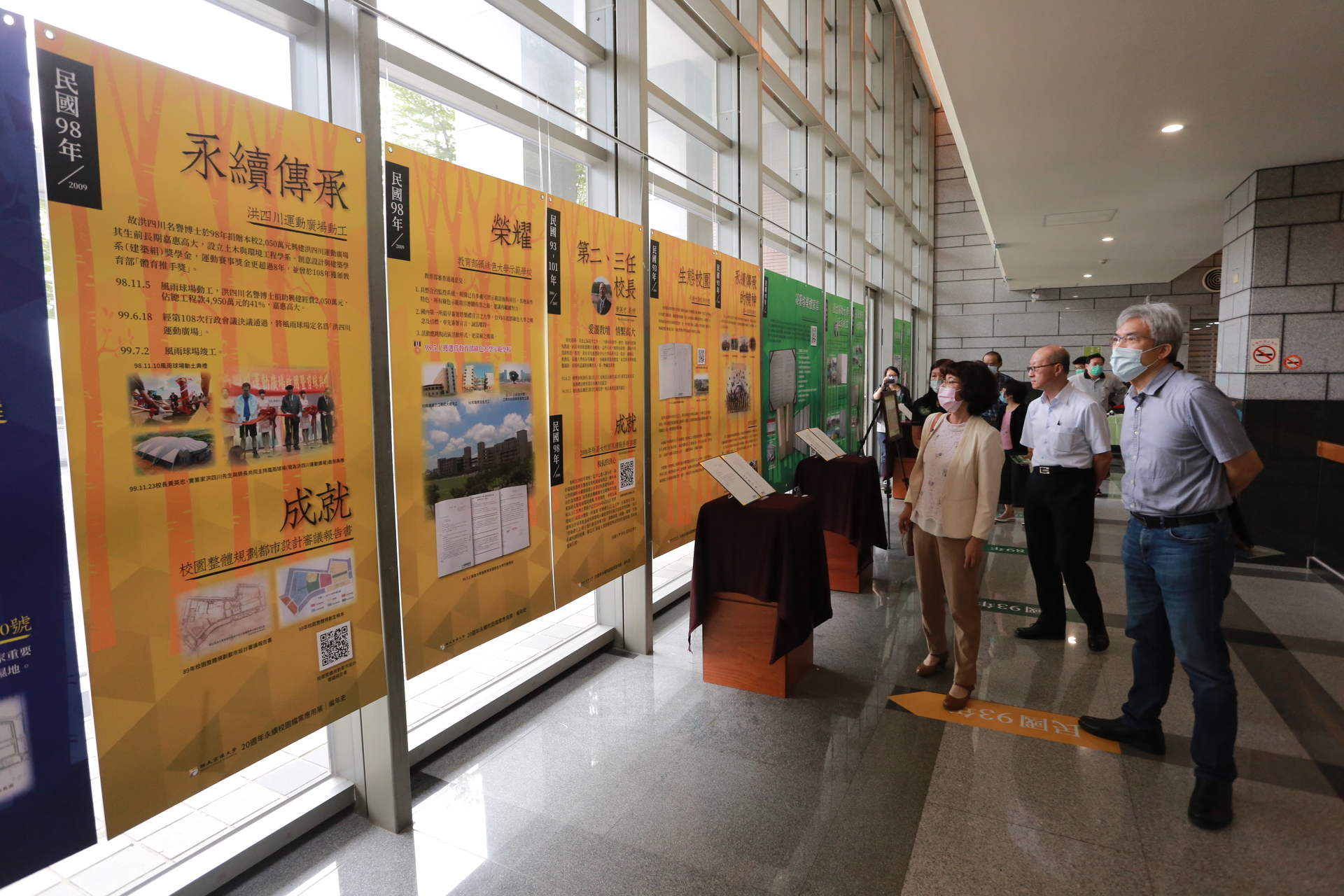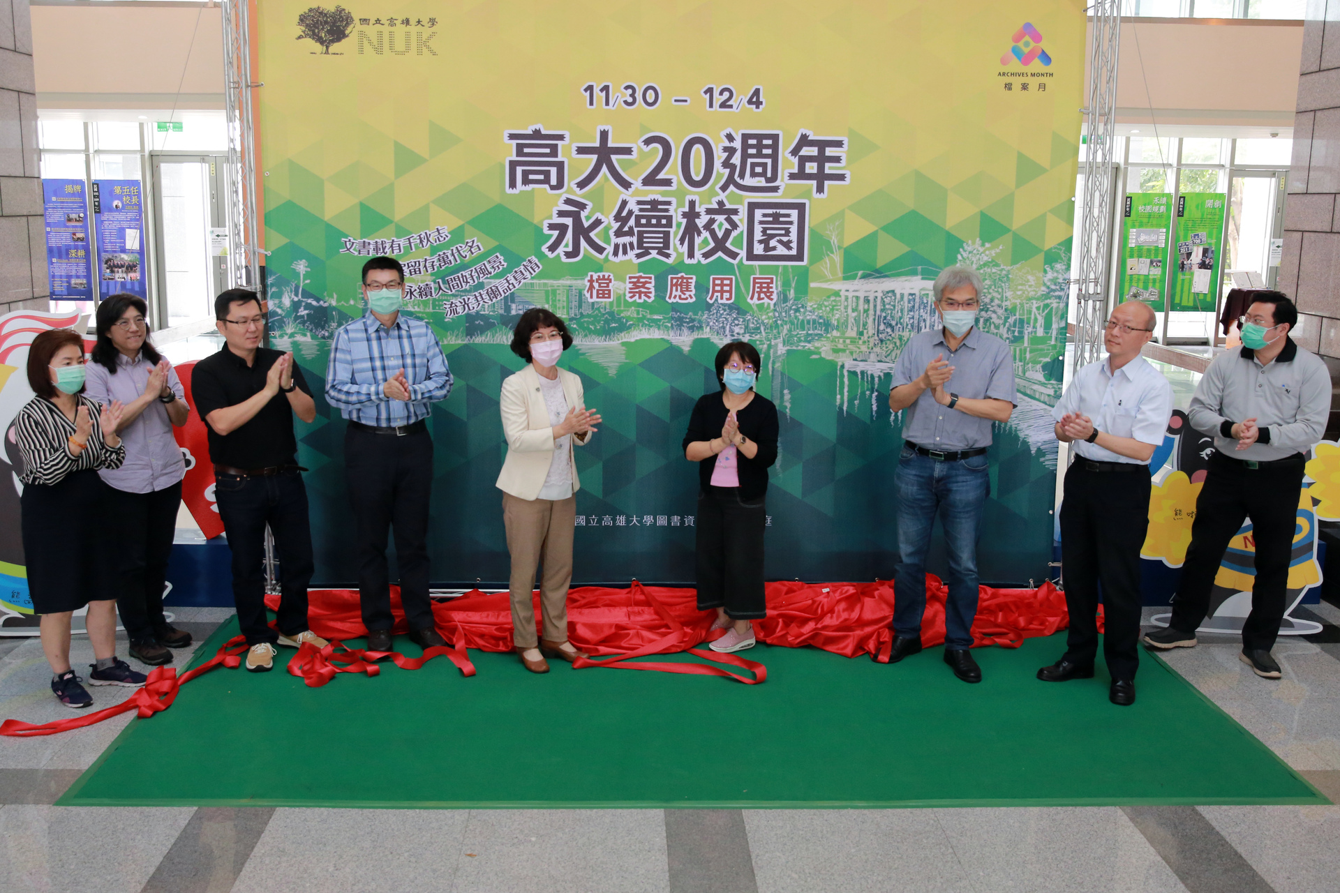 -【文字提供:總務處文書組組長許美娟,公共事務組編修 】2020-11-30 國立高雄大學「20週年永續校園—檔案應用展」今(30)日開幕,展出創校迄今多項珍貴文件、影像資料及物品,彷彿走入時光長廊,共同見證高大校園發展建設。活動自即日起至4日,每日上午9時至17時,於校內圖書資訊大樓2樓中庭展出,歡迎前往欣賞。高雄大學校長陳月端特別出席開幕剪綵,表達重視與感謝。陳表示,歷任校長帶領全校師生共同努力才有今日成果,而她也責無旁貸,承先啟後開創新局,包括放大產學及研究能量、堅持教學品質,也要體現大學社會責任,整合在地資源促進地方發展,創造多元競爭特色。高雄大學前身是一大片魚塭、農田,最初的景象是有樹無蔭、有草不綠,土壤也是偏鹼性與高鹽。高大自2000年創校以來,即大力營造環境生態維護及綠化,並積極推動社區合作、資源共享等永續校園。本次檔案展以編年方式,分成四大色系,並用年度地標輔助,帶領觀展者進入時光的長廊,感受高大重要歷史與榮耀。除了核准設校公文、校園規劃、建築藍圖、塔樂禮宣言等多項珍貴文件,也有籌備處招牌、動土金鏟,處處體現一路走來的用心成果。-