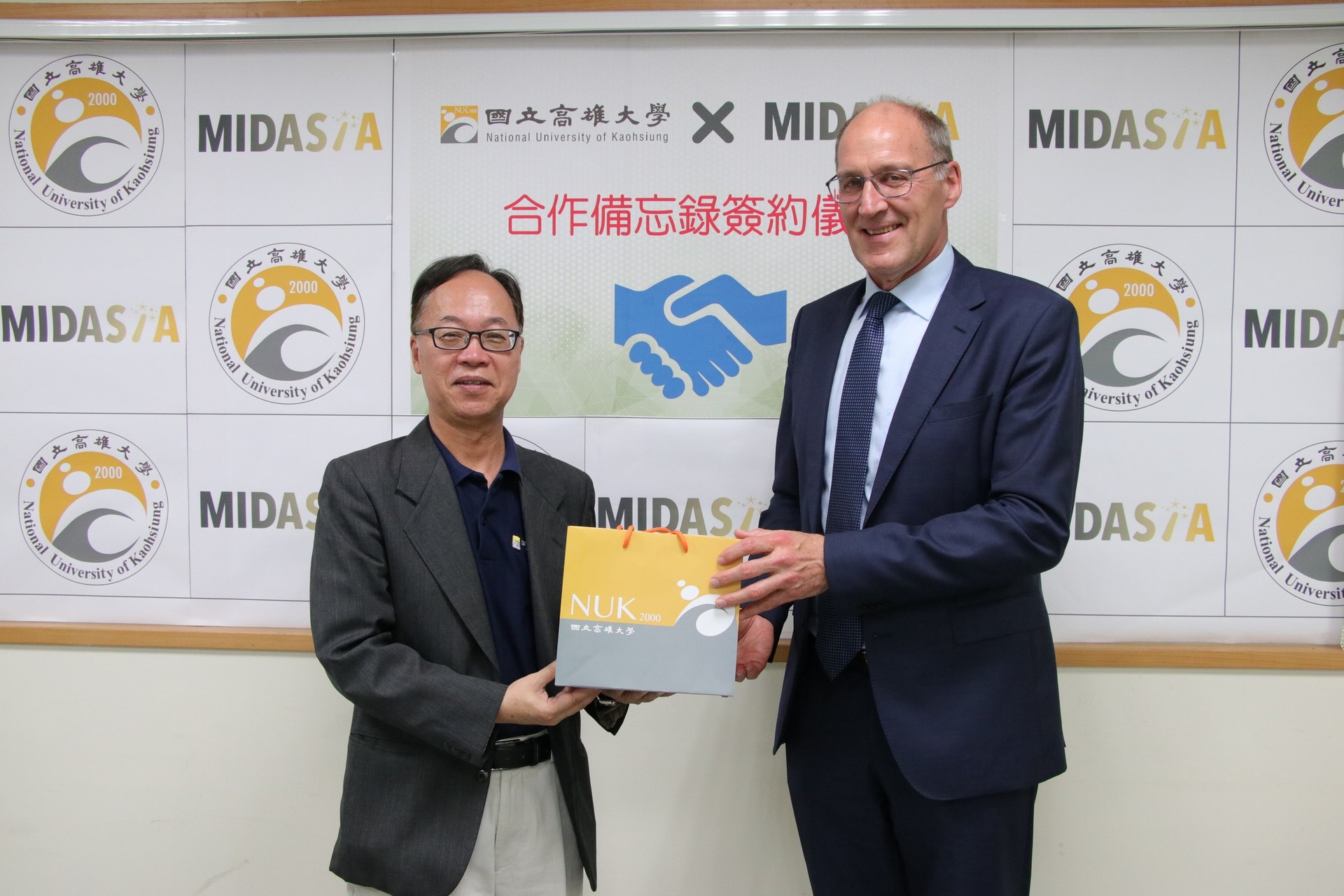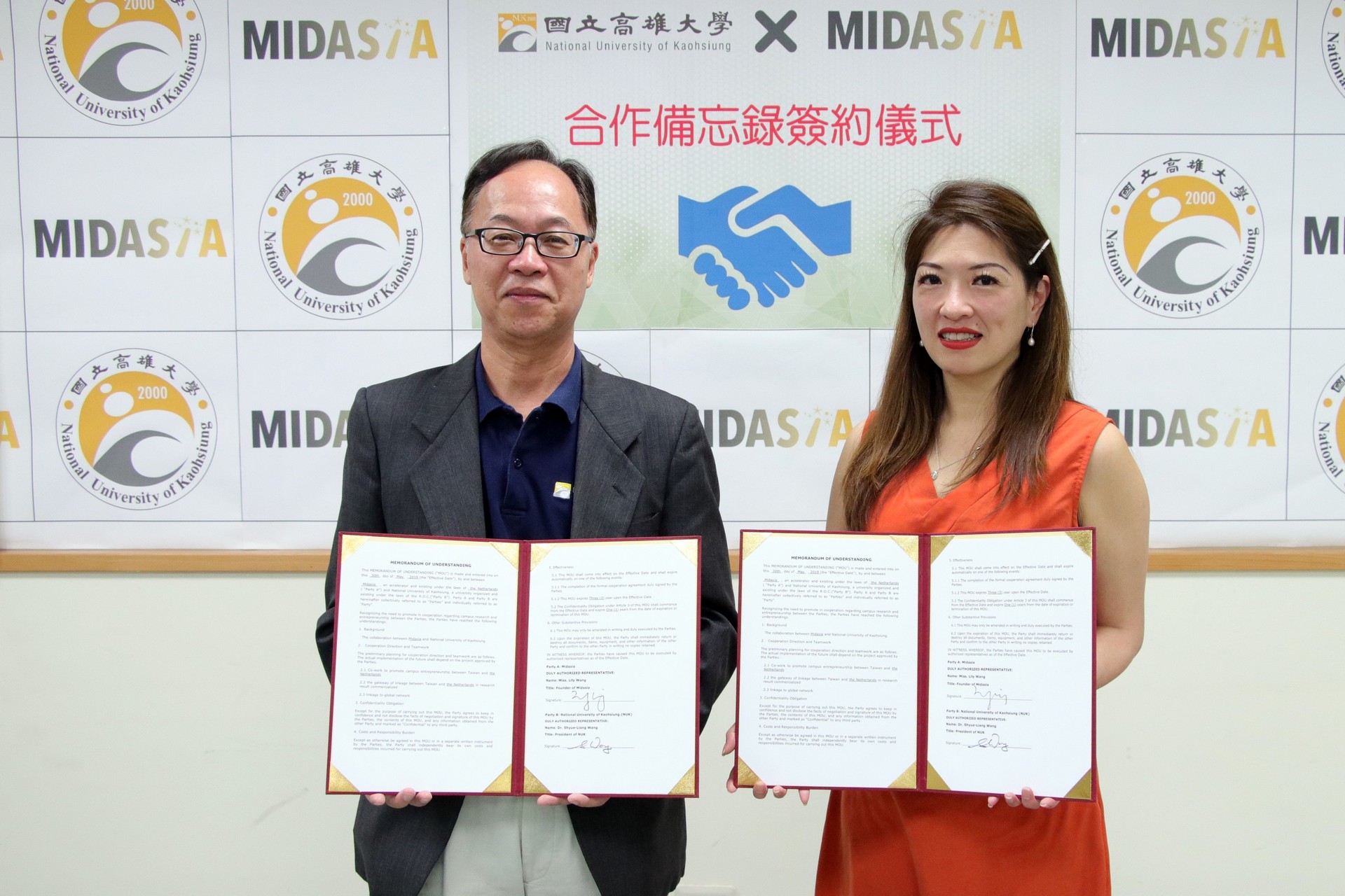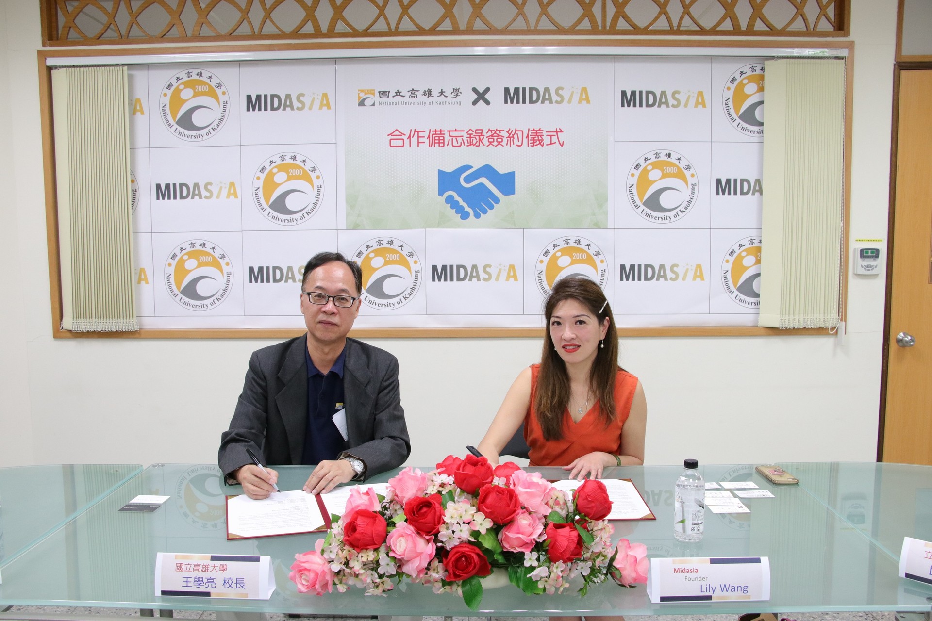 高雄大學研究發展處主導安排該合作,校長王學亮、Midasia創辦人Lily Wang代表簽約,雙方團隊也為Midasia在台聯絡處(設於高大育成中心)舉行揭牌儀式。