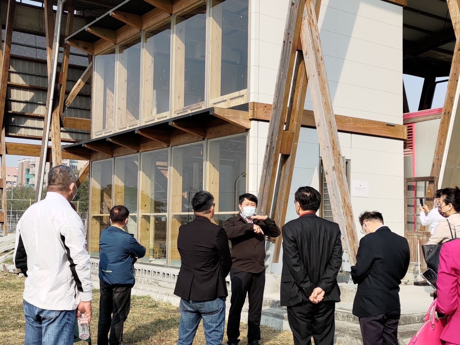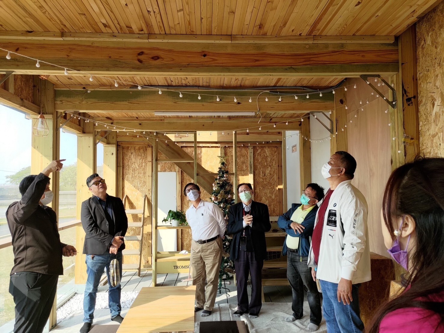 來訪的許多貴賓表示,明確體驗到木構造實際可以解決的問題,對於示範的建築單元也多有肯定,日後希望能持續開啟與高大及相關研究團隊的合作機會。陳啓仁老師強調,在氣候變遷與全球淨零戰略的目標下,衍生出的碳稅問題及碳交易市場已經迫在眉睫,身為綠色大學的高大,已具備良好的基底,更可積極結合校內各院系的研究能量,從碳經濟、碳捕捉、碳匯技術等面向,統合發展出一座可能蓄積碳權的綠色校園。