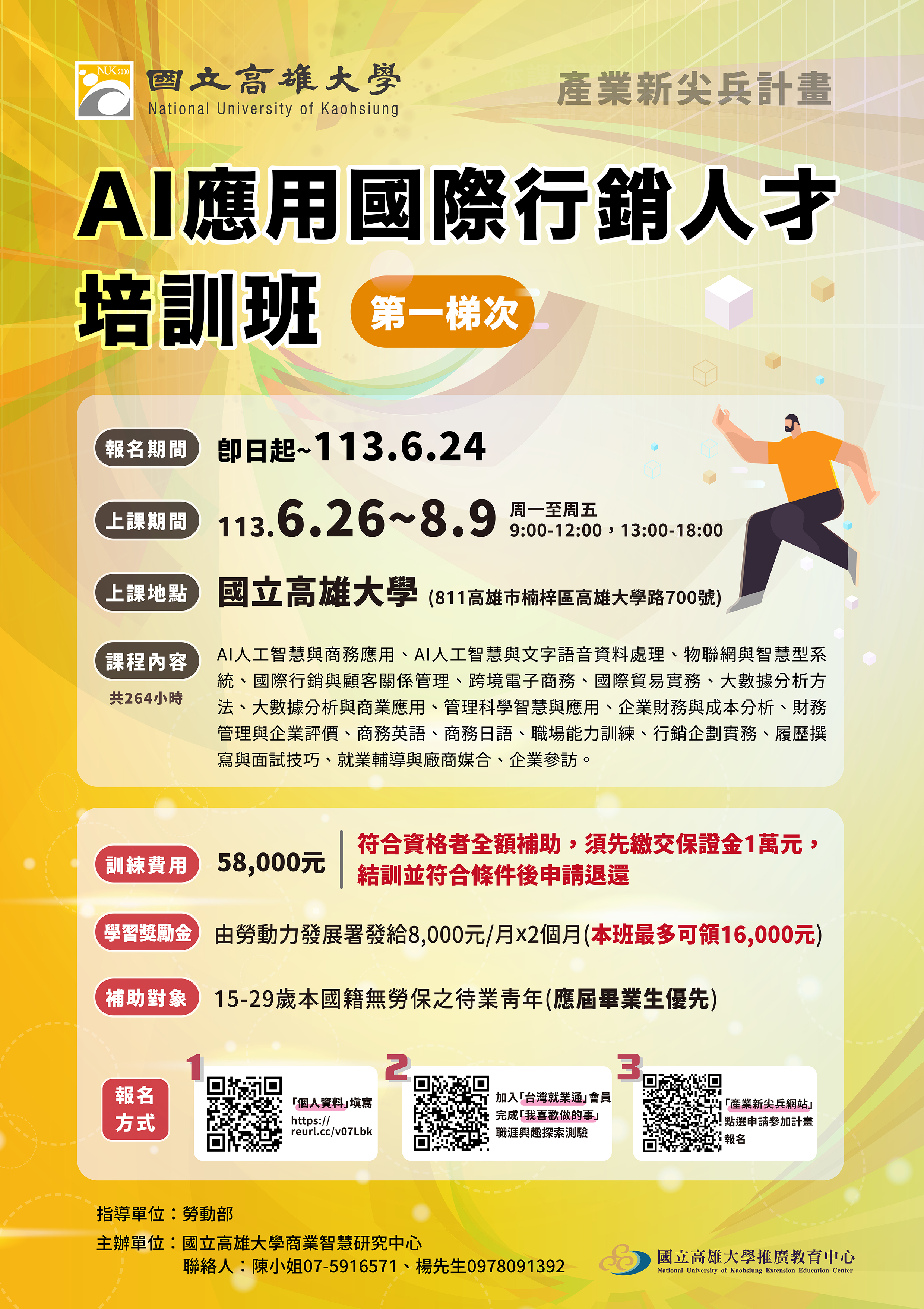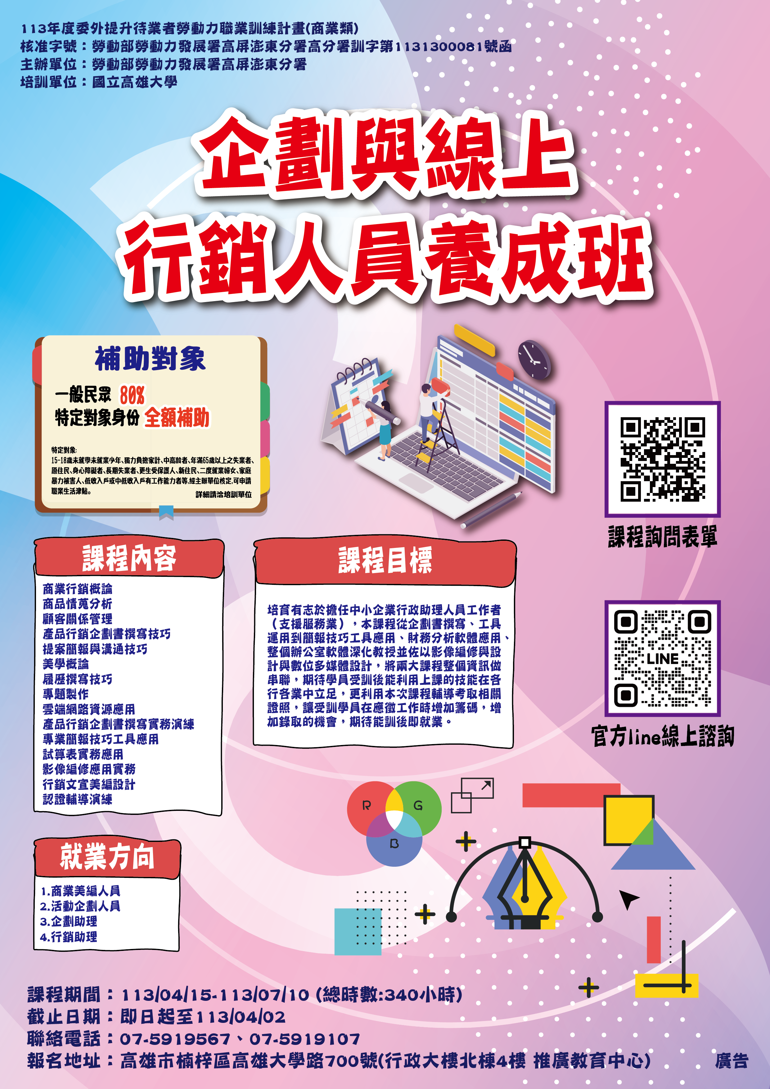 本校推廣教育中心結合政府單位辦理職能培訓,包含待業者職業訓練及在職者職能進修,相關課程如下: